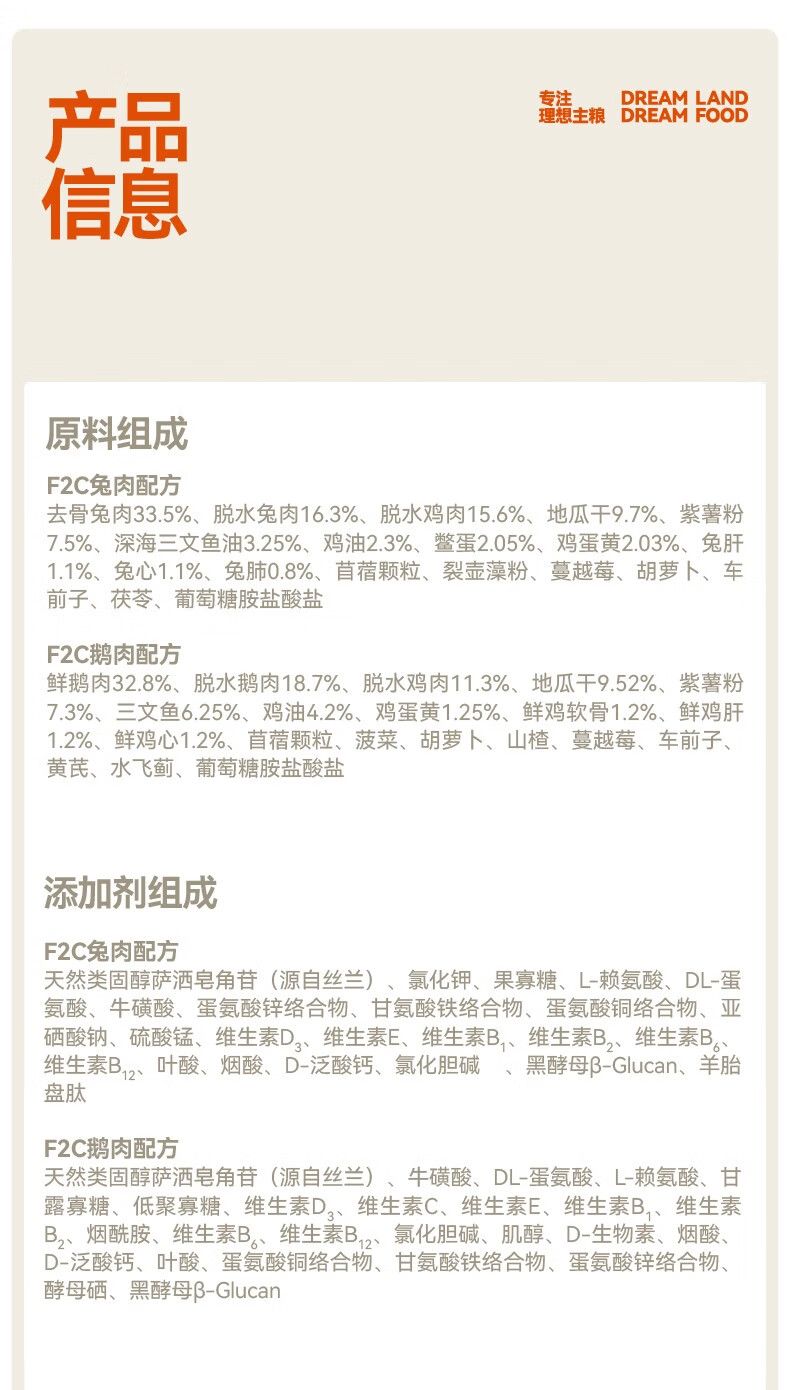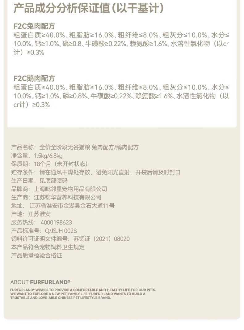商品名称:FurFurLand毛星球F2C系列干粮 全价全阶段无谷 猫粮鹅肉配方 兔肉配方