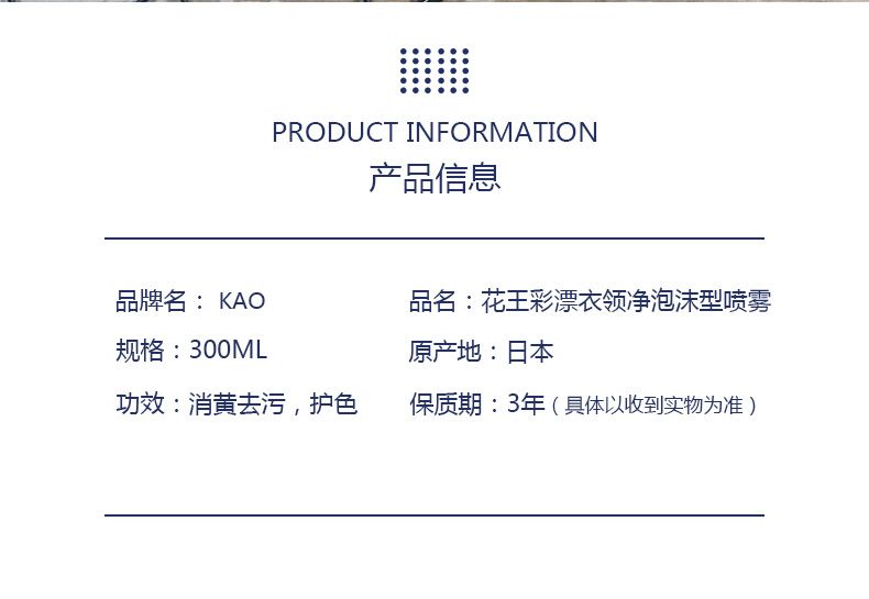 商品名称:花王彩漂衣领净泡沫型喷雾 300ml