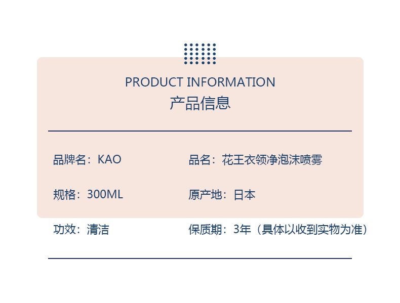 商品名称:日本 花王衣领净衣物重点污渍清洁泡沫喷雾 300ml
