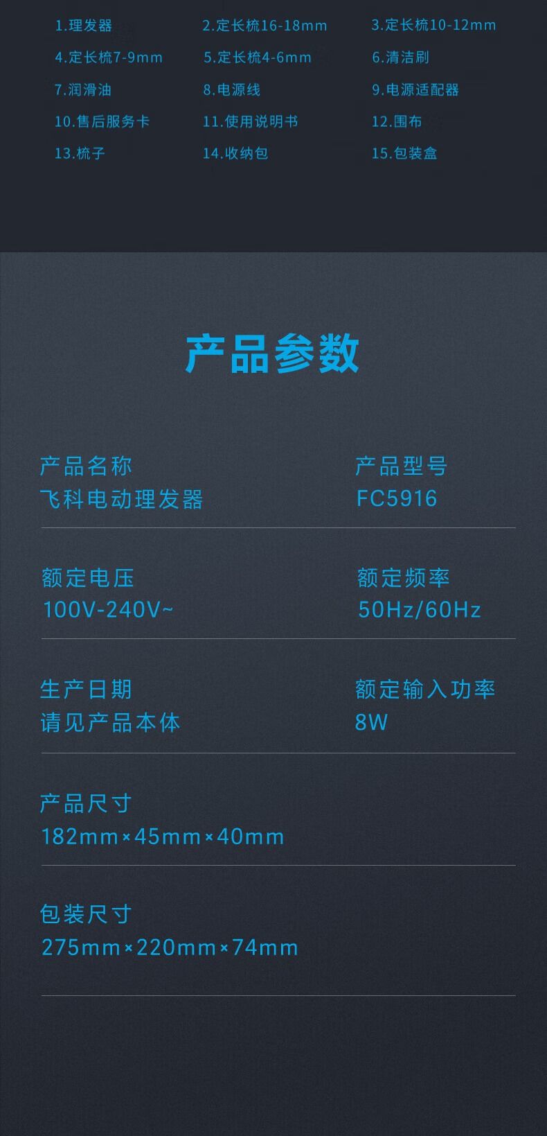 商品名称:飞科 理发器FC5916 家用智能电推剪成人儿童理发推子剃头刀剪发器
