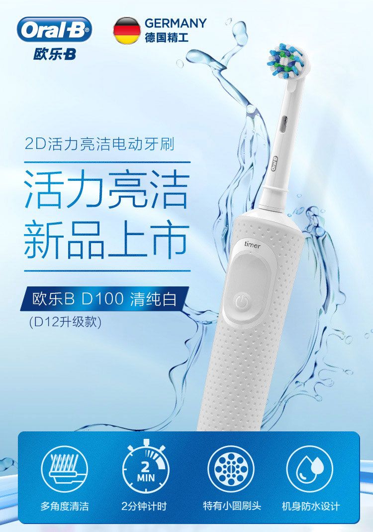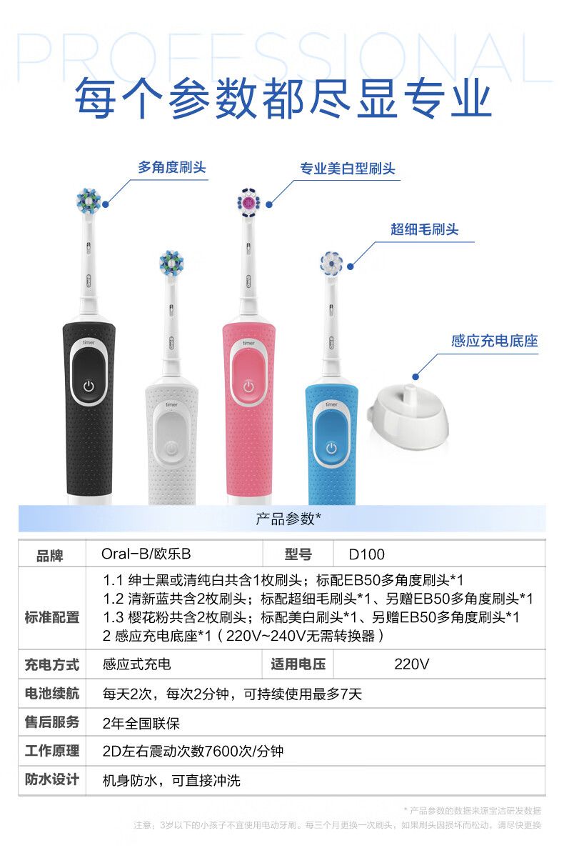 商品名称:欧乐B 电动牙刷成人D100 小圆头牙刷情侣礼物自动声波旋转震动充电式