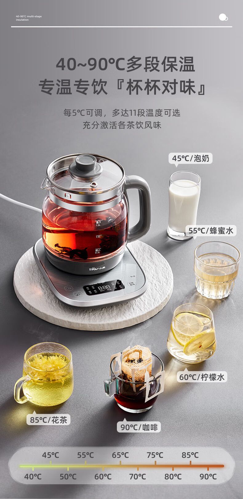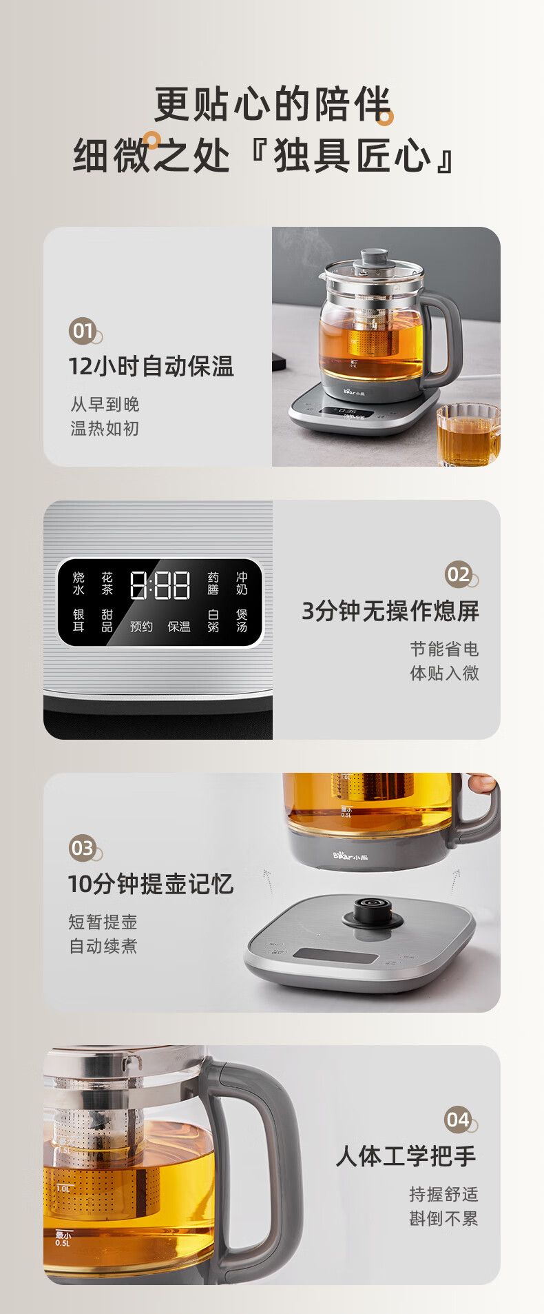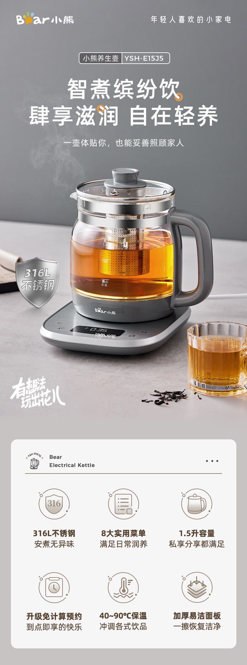 商品名称:小熊(Bear)养生壶多功能316L不锈钢办公室 1.5L全自动泡煮茶器花茶烧水壶YSH-E15J5