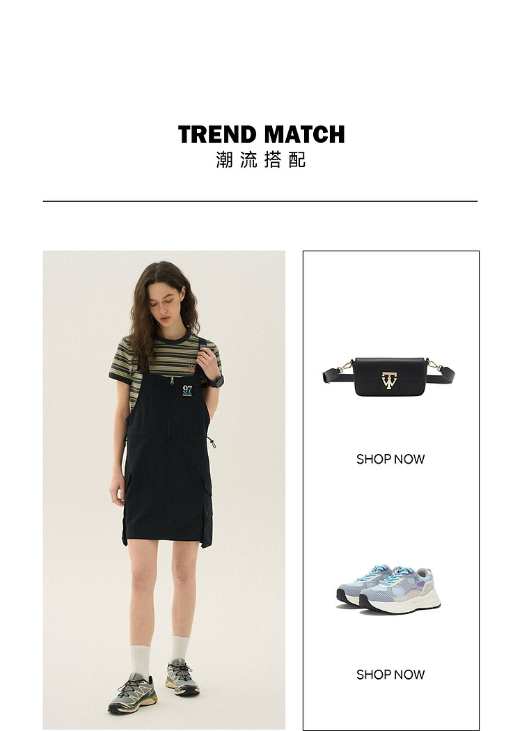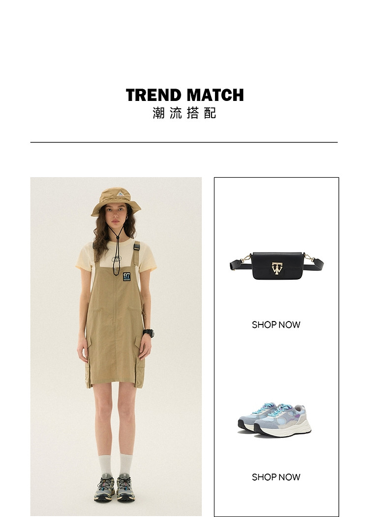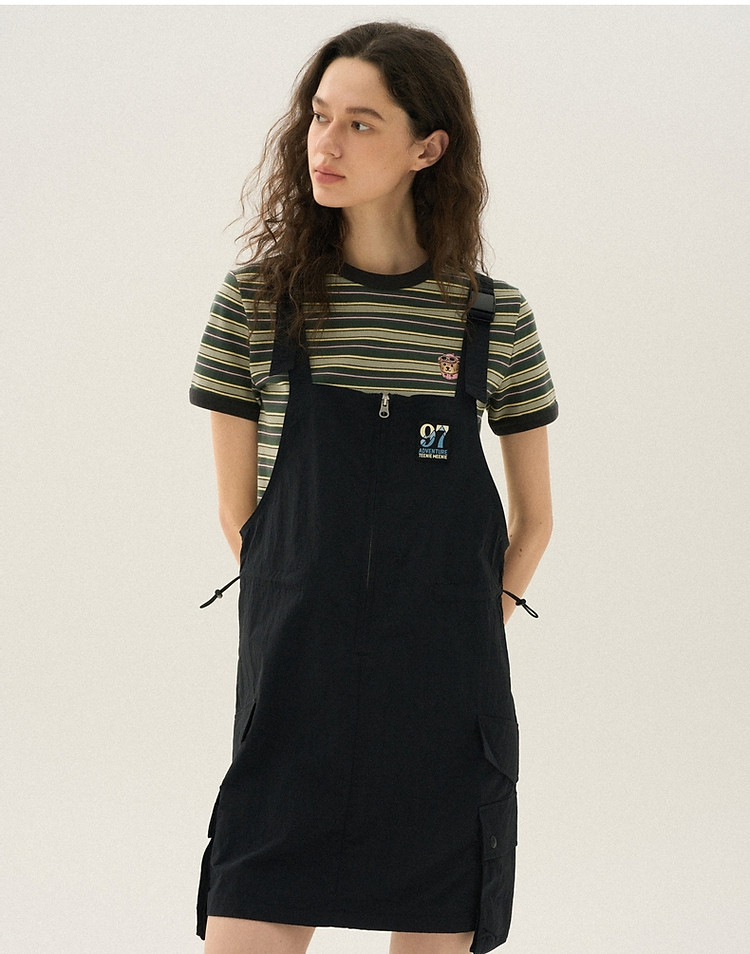 商品名称:小熊女装夏季塔斯隆面料工装风背带连衣裙 765377