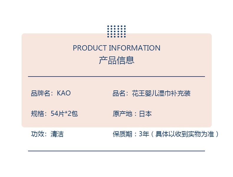商品名称:日本 花王KAO 婴儿加厚湿巾补充装 54片*2包装