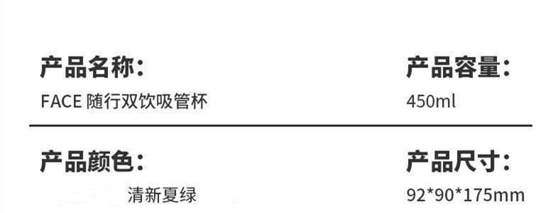 商品名称:FACE 夏季随行双饮杯 清新夏绿 450ml