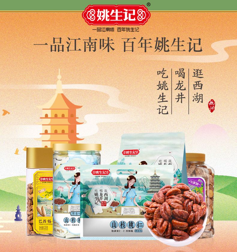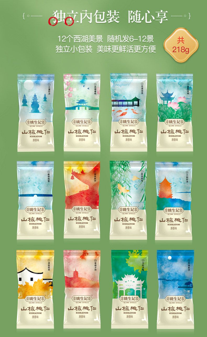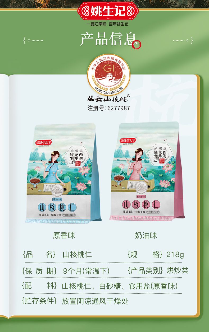 商品名称:姚生记临安山核桃仁218g小核桃肉独立小包装孕妇营养零食袋装坚果