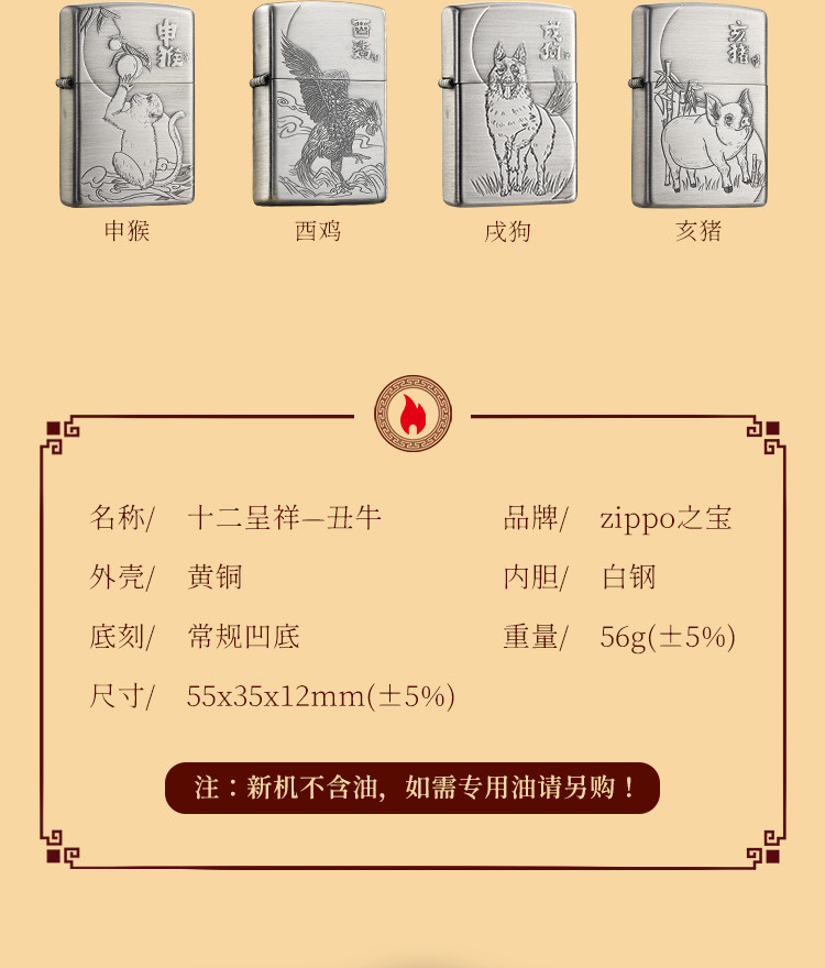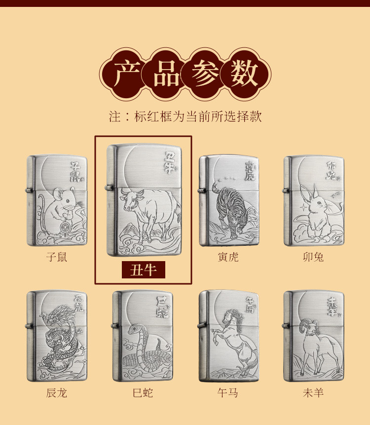 商品名称:【王牌爆款】打火机正版煤油十二生肖拉丝精雕高级感生日礼物 266270