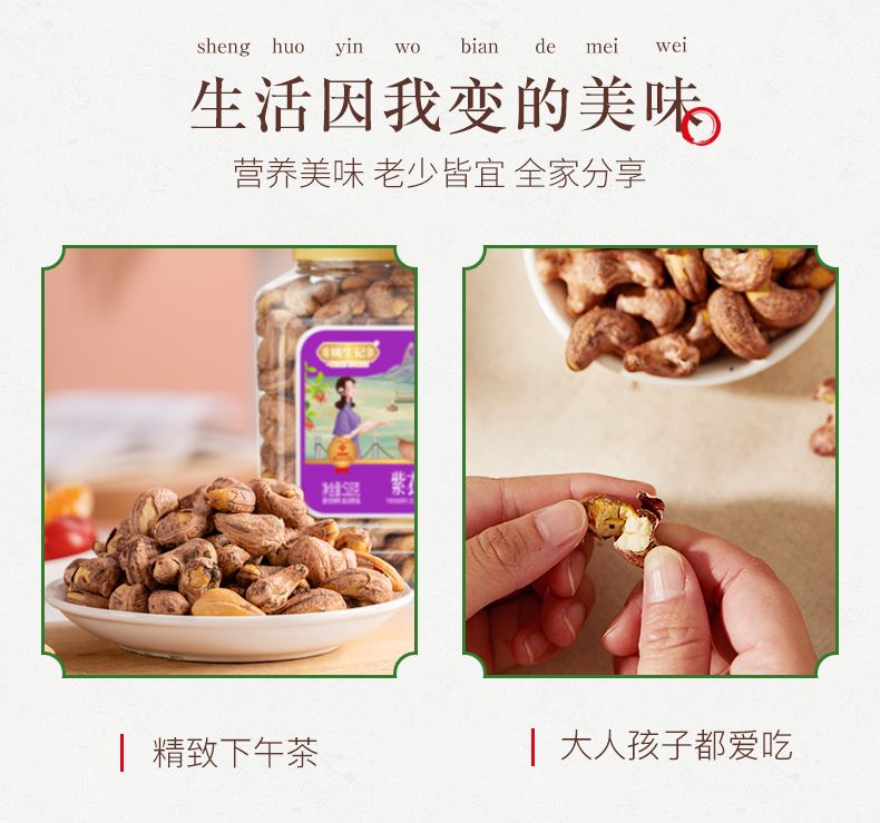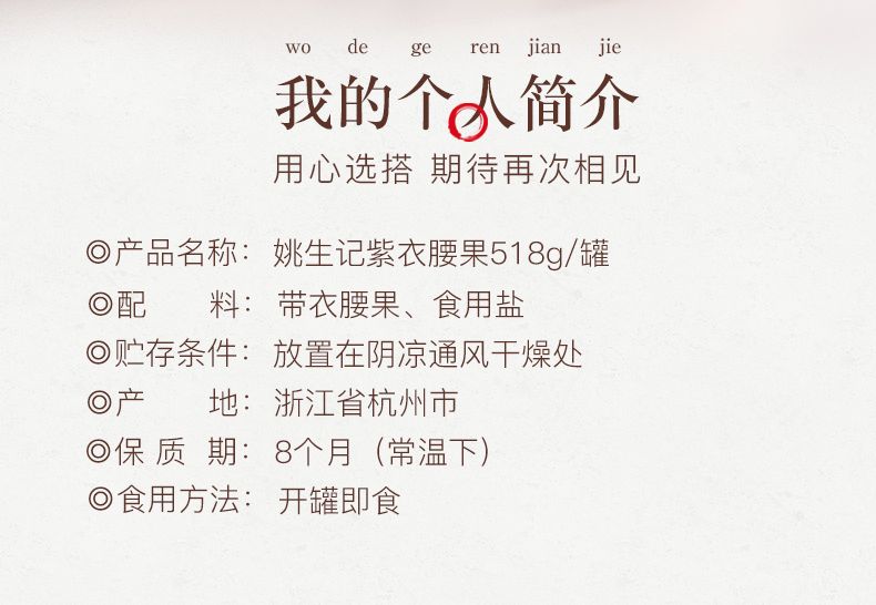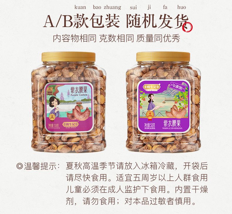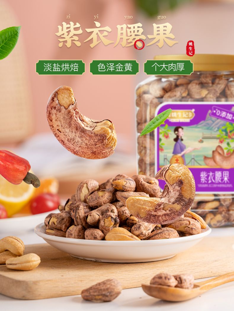 商品名称:姚生记紫衣腰果仁518g罐装坚果越南带皮紫衣腰果孕妇健康营养零食