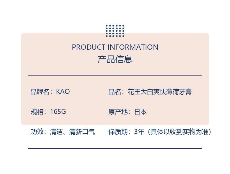 商品名称:日本 KAO/花王大白爽快薄荷牙膏 165G