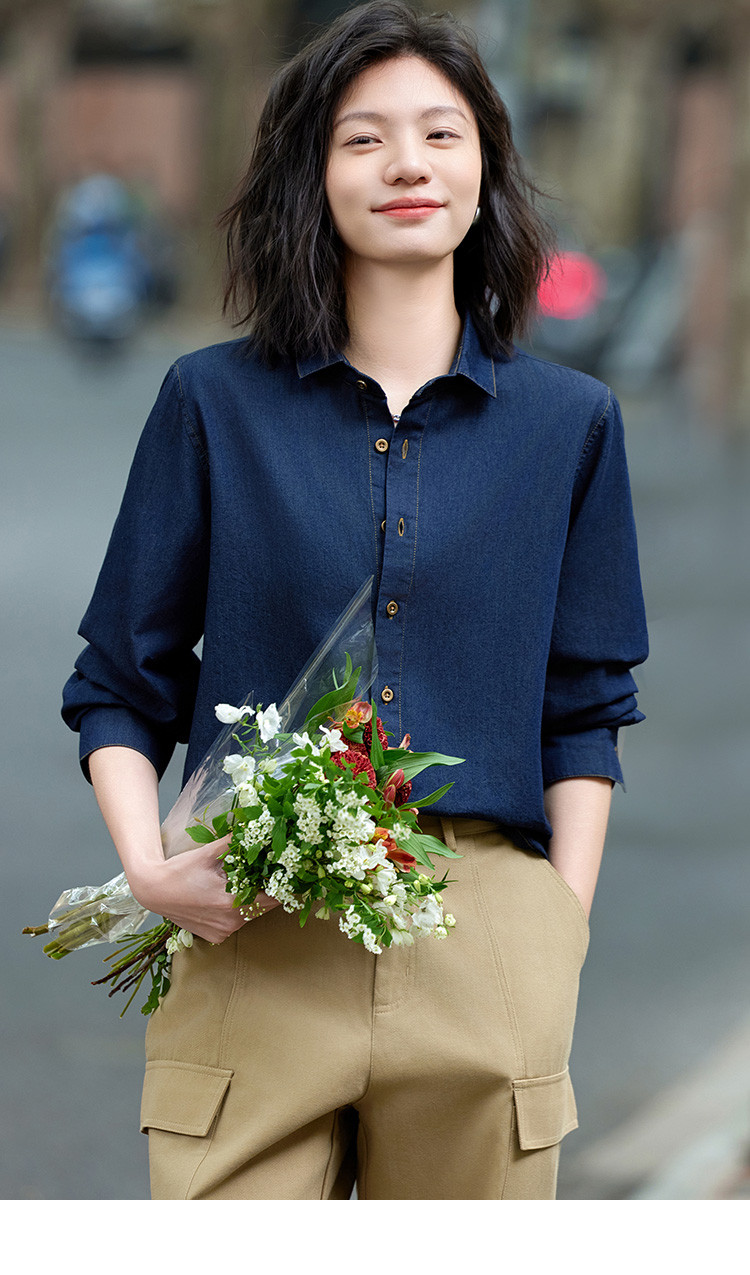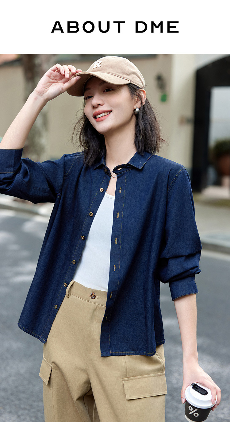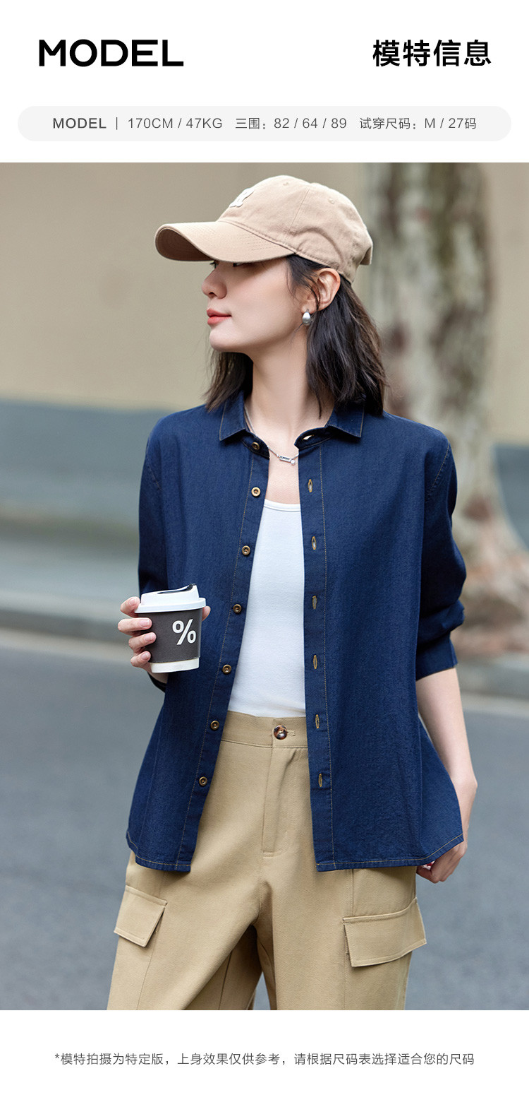 商品名称:【简约经典翻领衬衫】秋可做外套可叠穿百搭牛仔衬衫女 342786