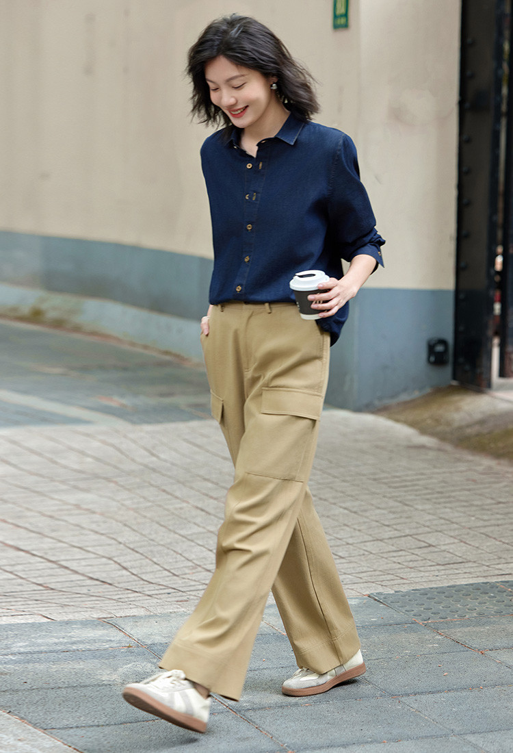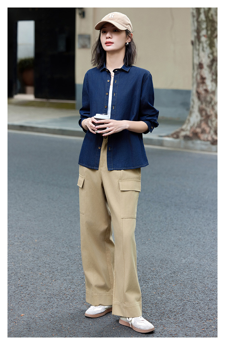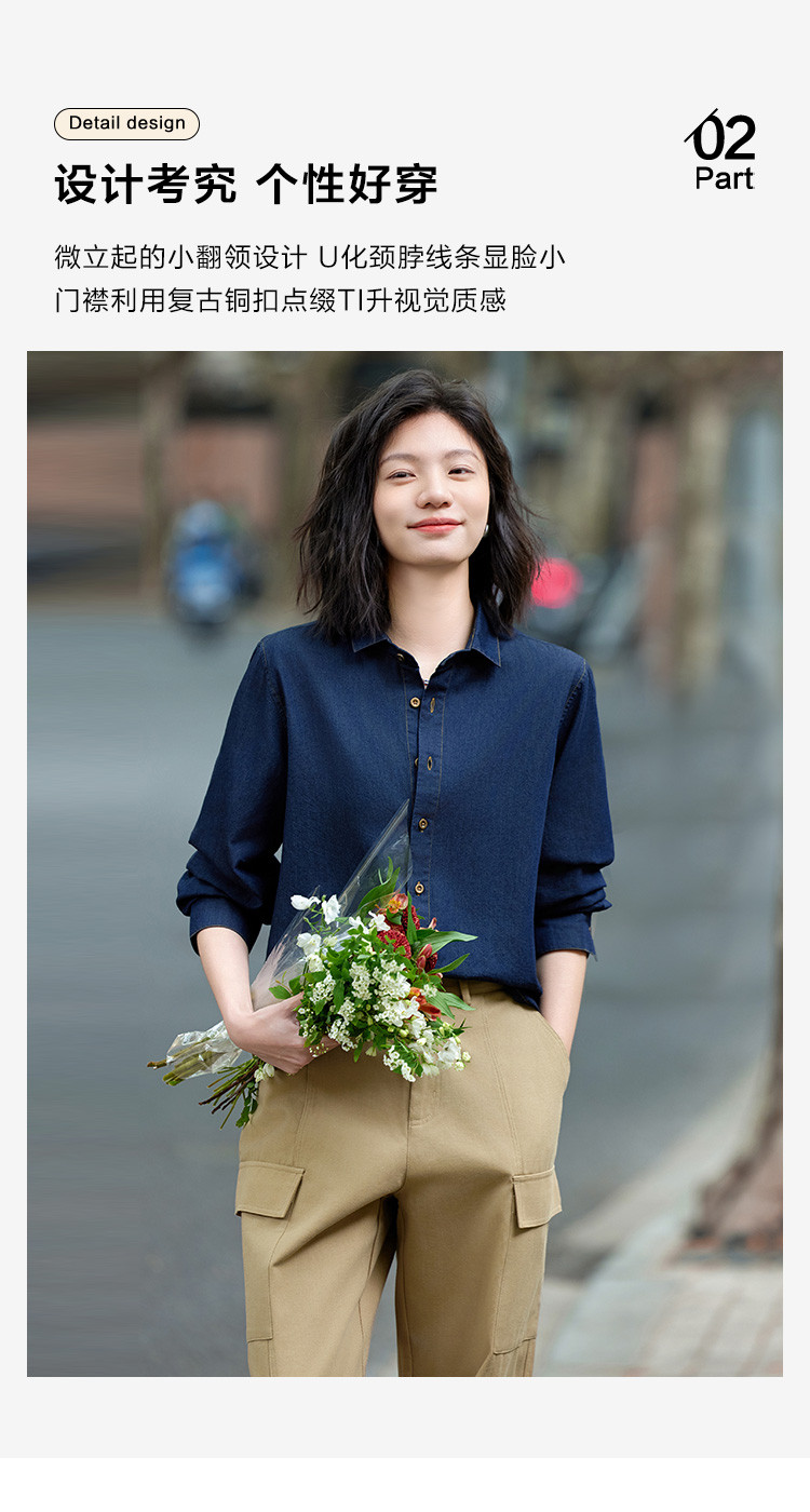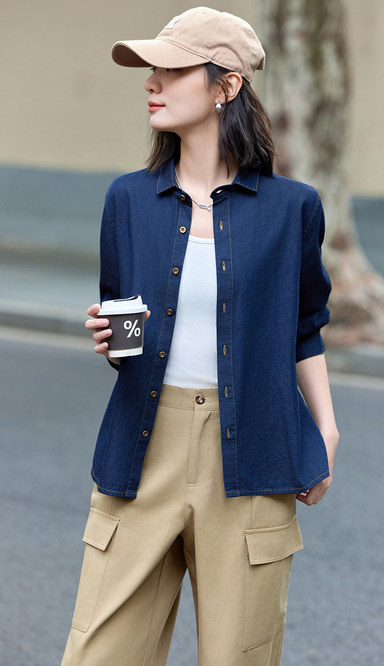 商品名称:【简约经典翻领衬衫】秋可做外套可叠穿百搭牛仔衬衫女 342786