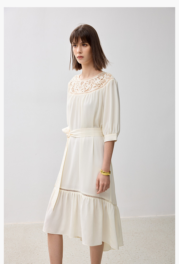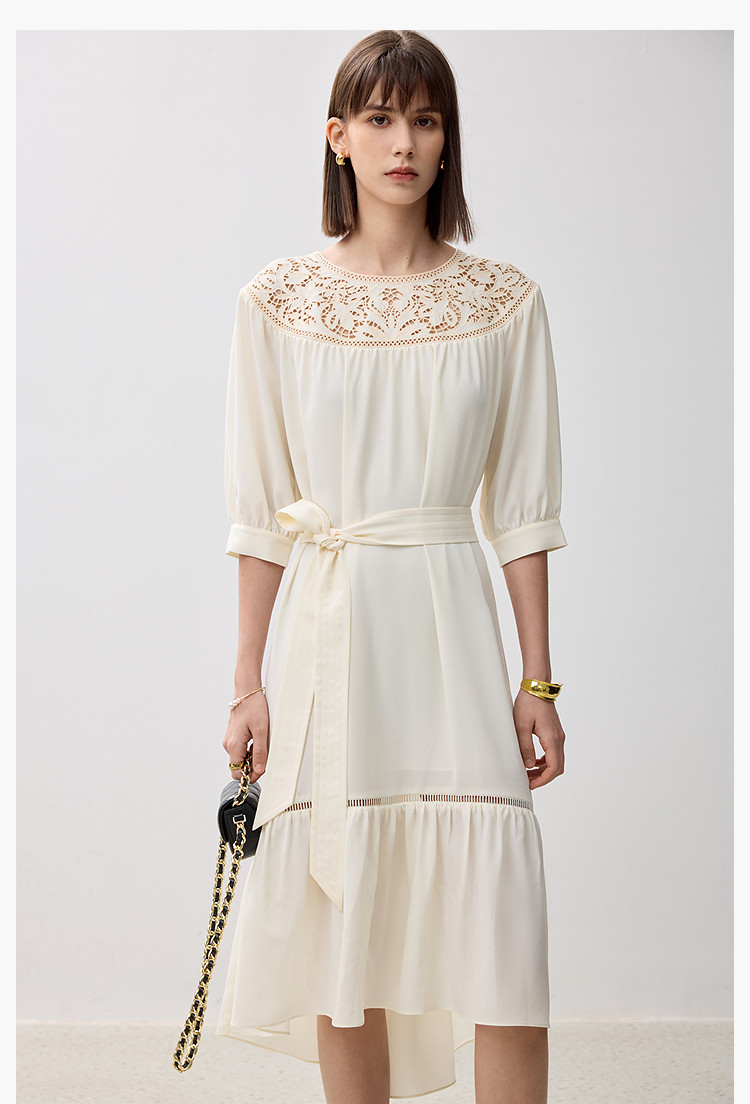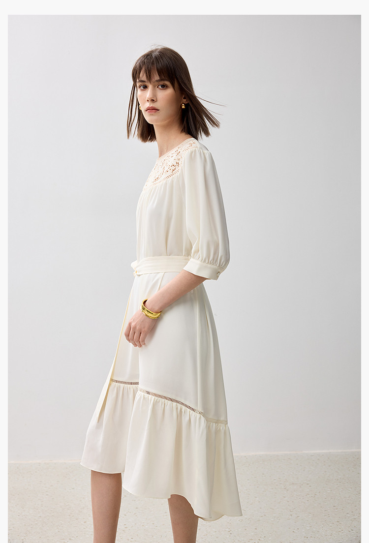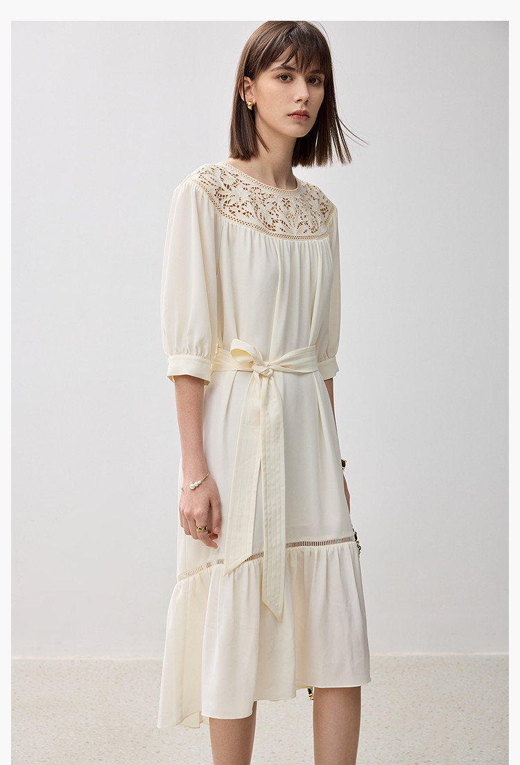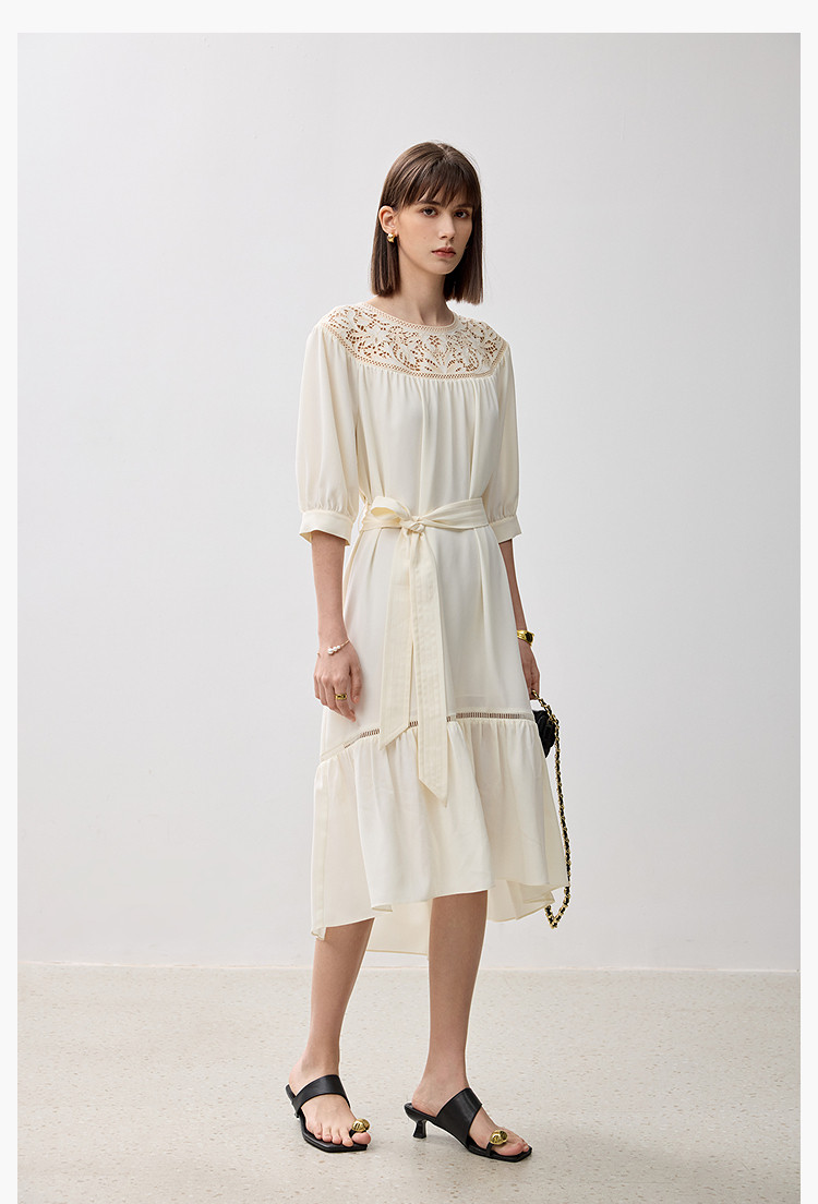 商品名称:春季海边度假风连衣裙女气质高级感蕾丝花边法式荷叶边连衣裙女 766171