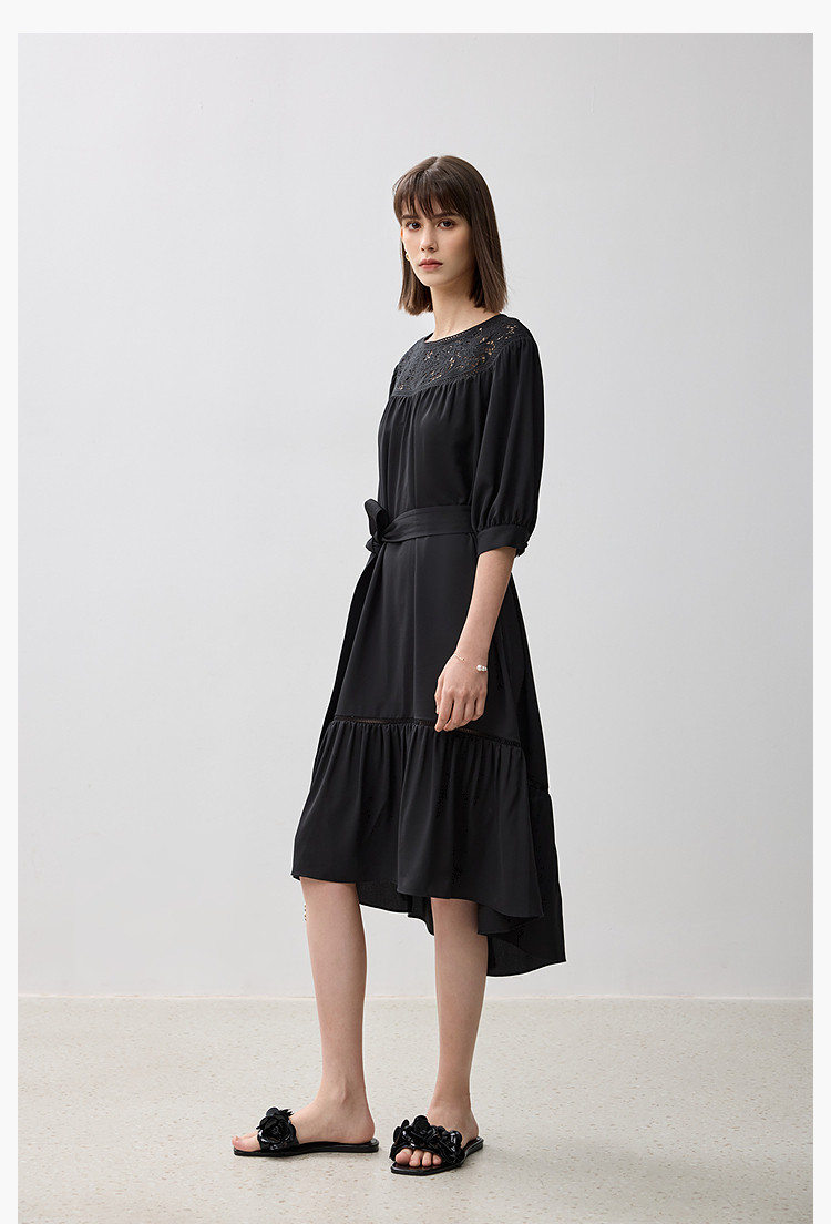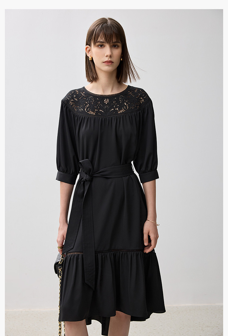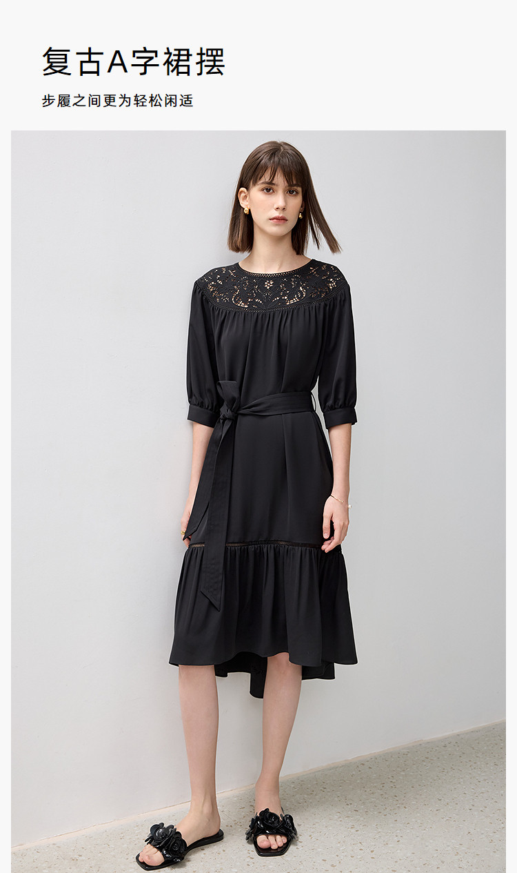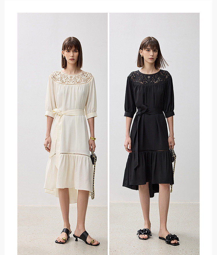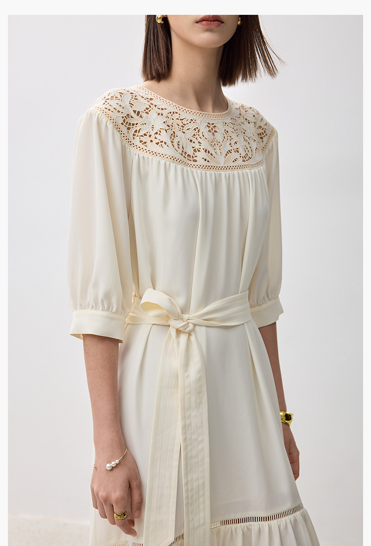 商品名称:春季海边度假风连衣裙女气质高级感蕾丝花边法式荷叶边连衣裙女 766171