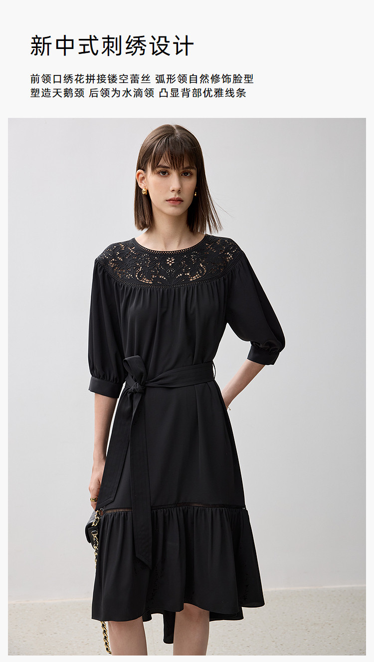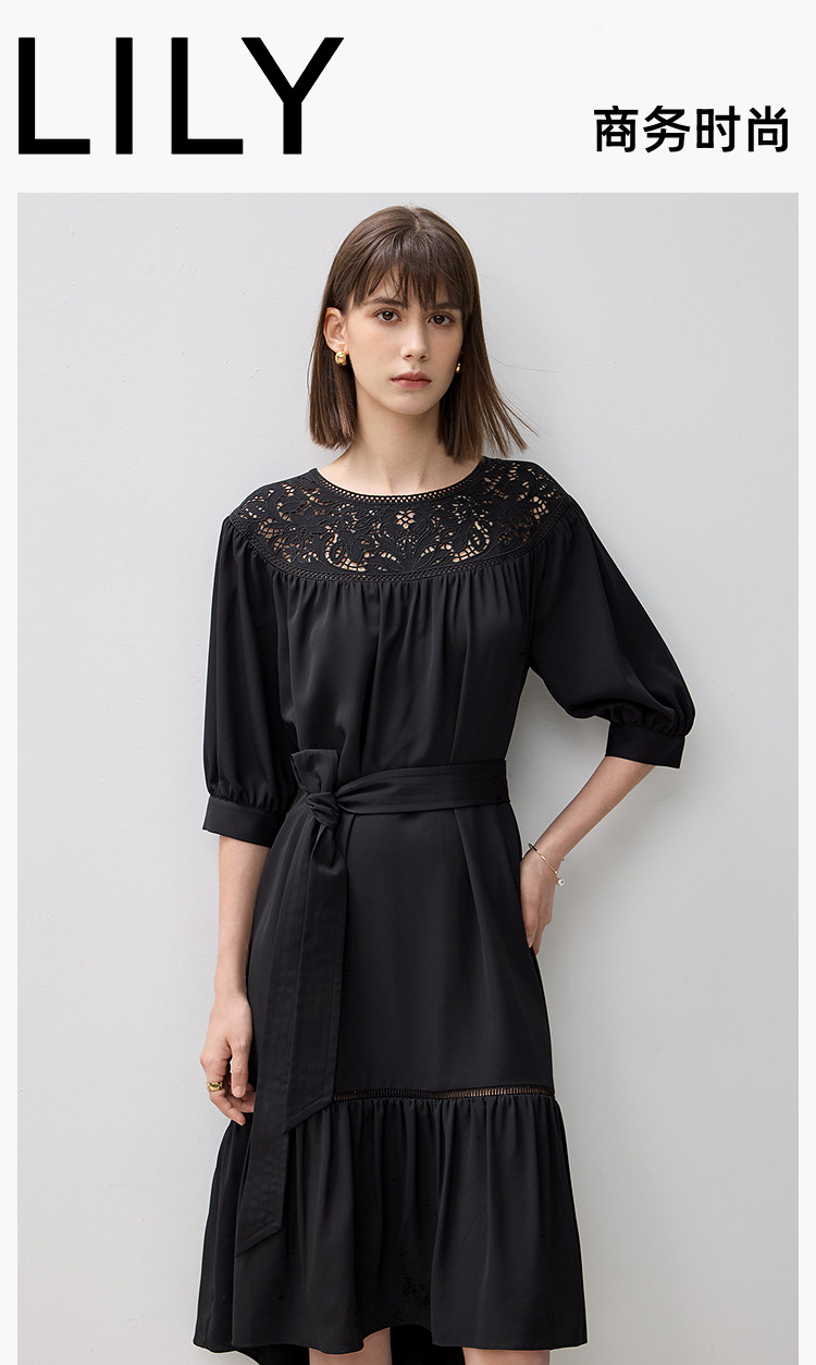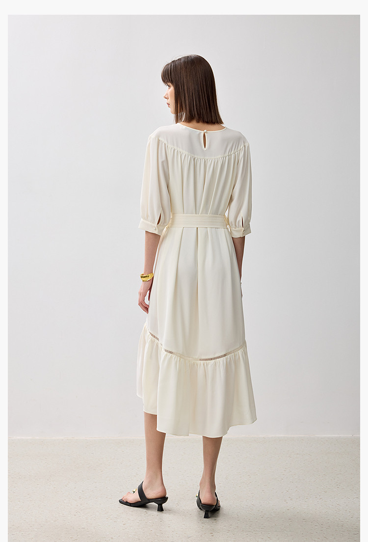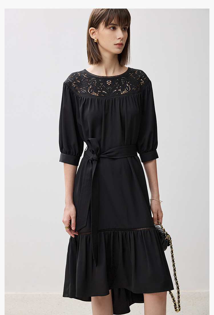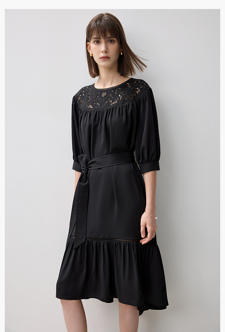 商品名称:春季海边度假风连衣裙女气质高级感蕾丝花边法式荷叶边连衣裙女 766171
