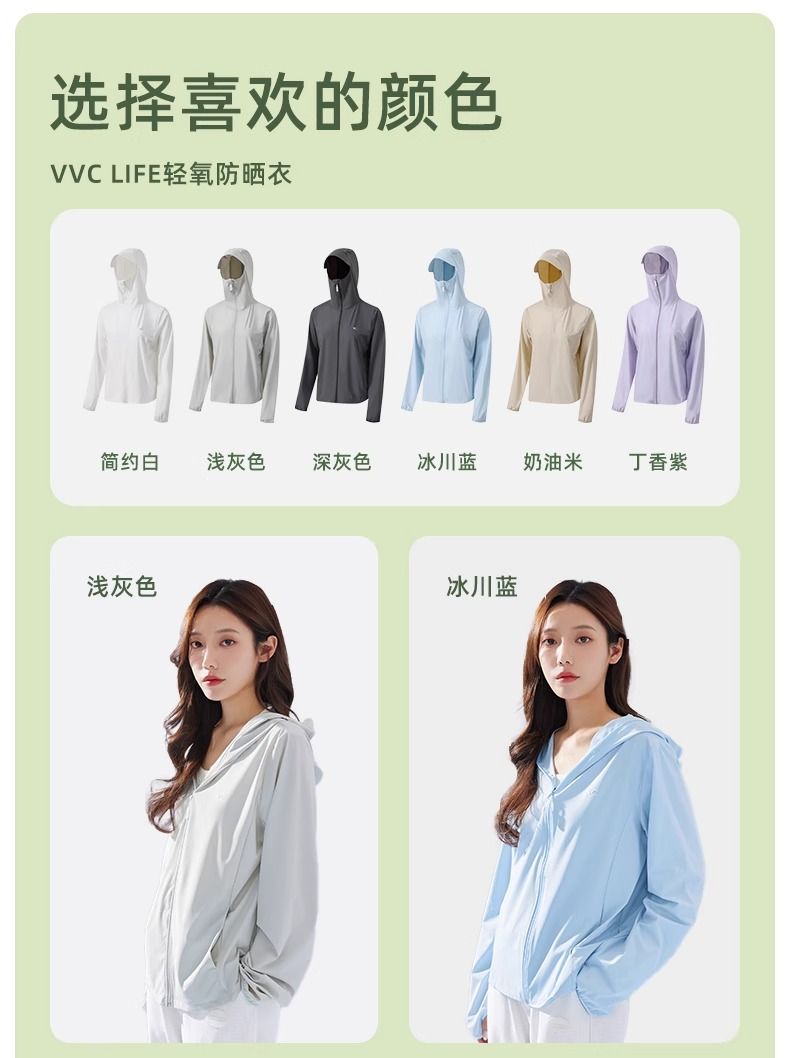商品名称:VVC轻氧防晒衣夏季遮阳防晒服女骑车户外防晒外套女透气薄款户外