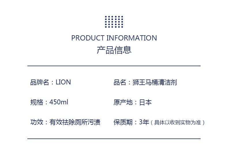 商品名称:日本 狮王马桶洁厕所清洁剂450ml