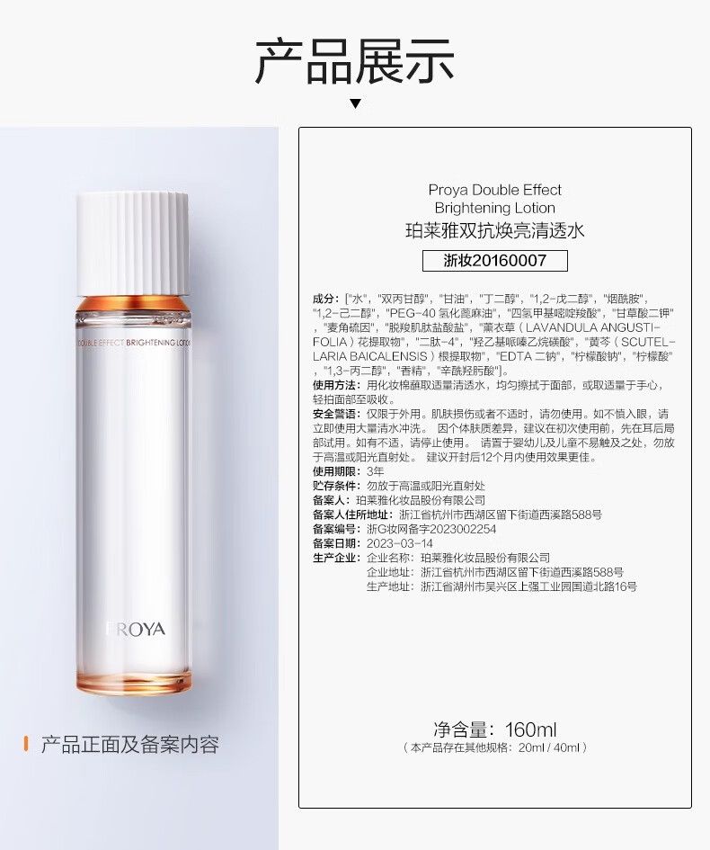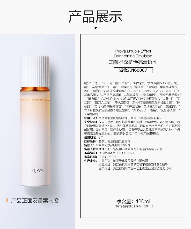 商品名称:Proya/珀莱雅 双抗焕亮清透水/乳液/霜