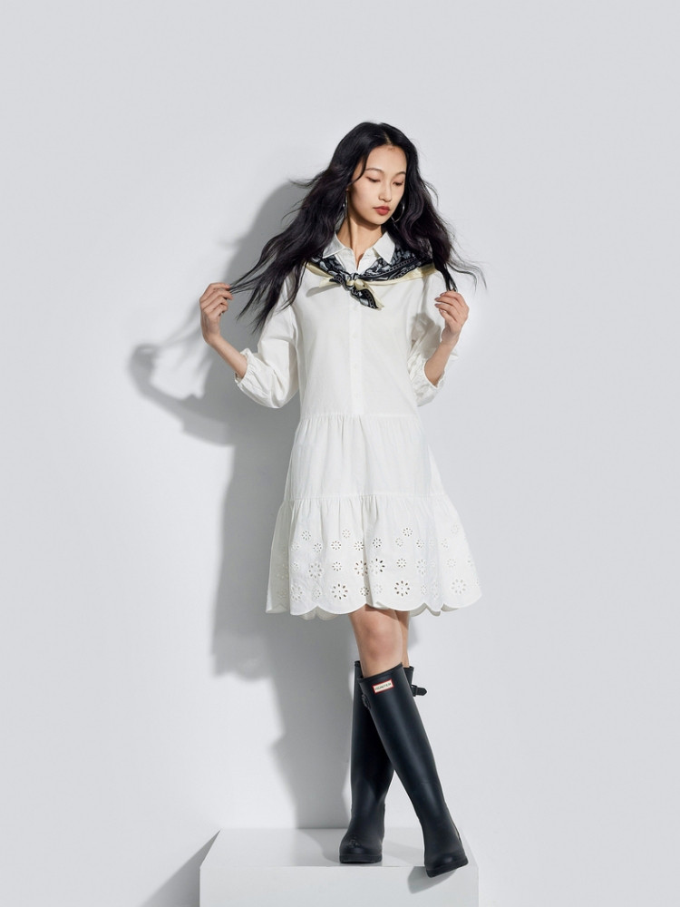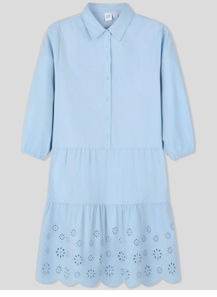 商品名称:Gap女装夏季简约气质镂空网眼长袖衬衫裙连衣裙891083 414426