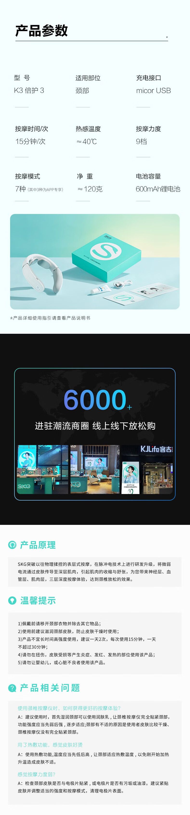 商品名称:SKG颈椎按摩器K3倍护3 脖子按摩仪肩颈护颈仪热敷电脉冲蓝牙操控