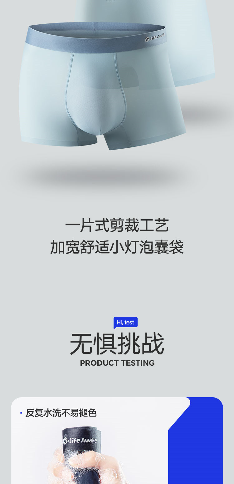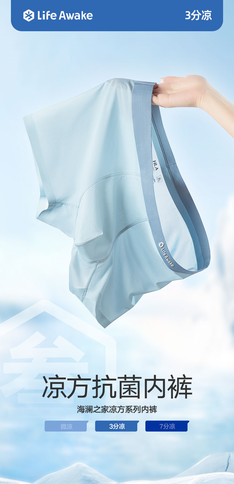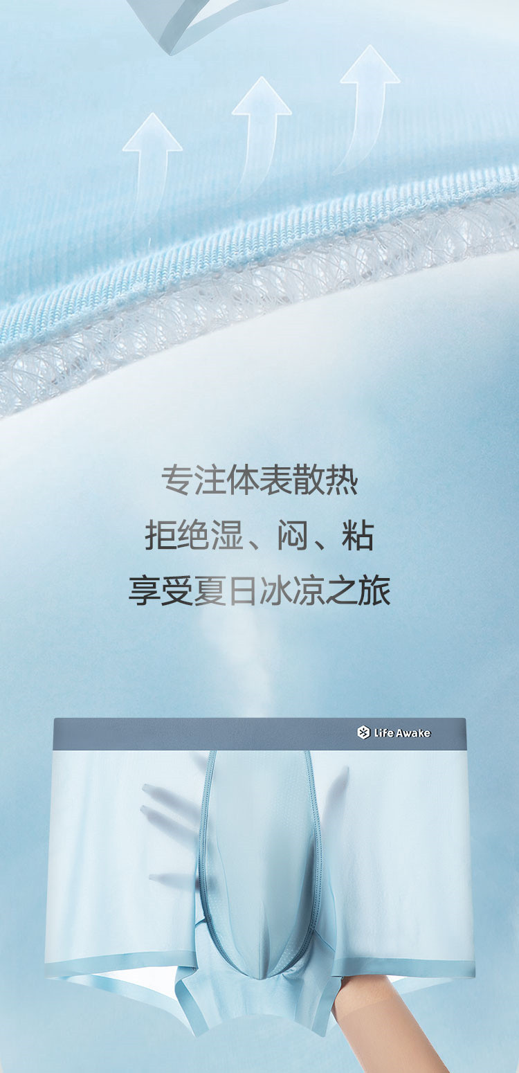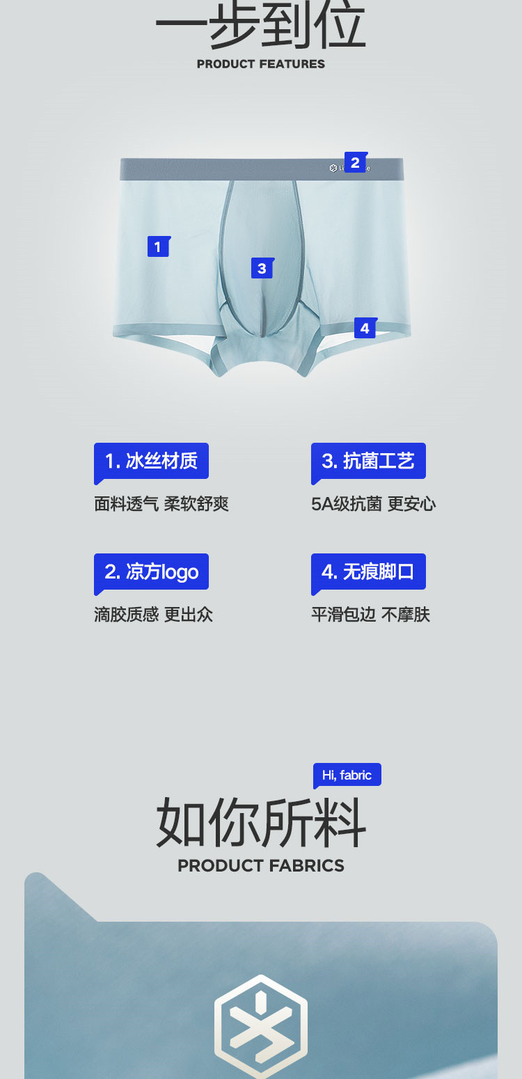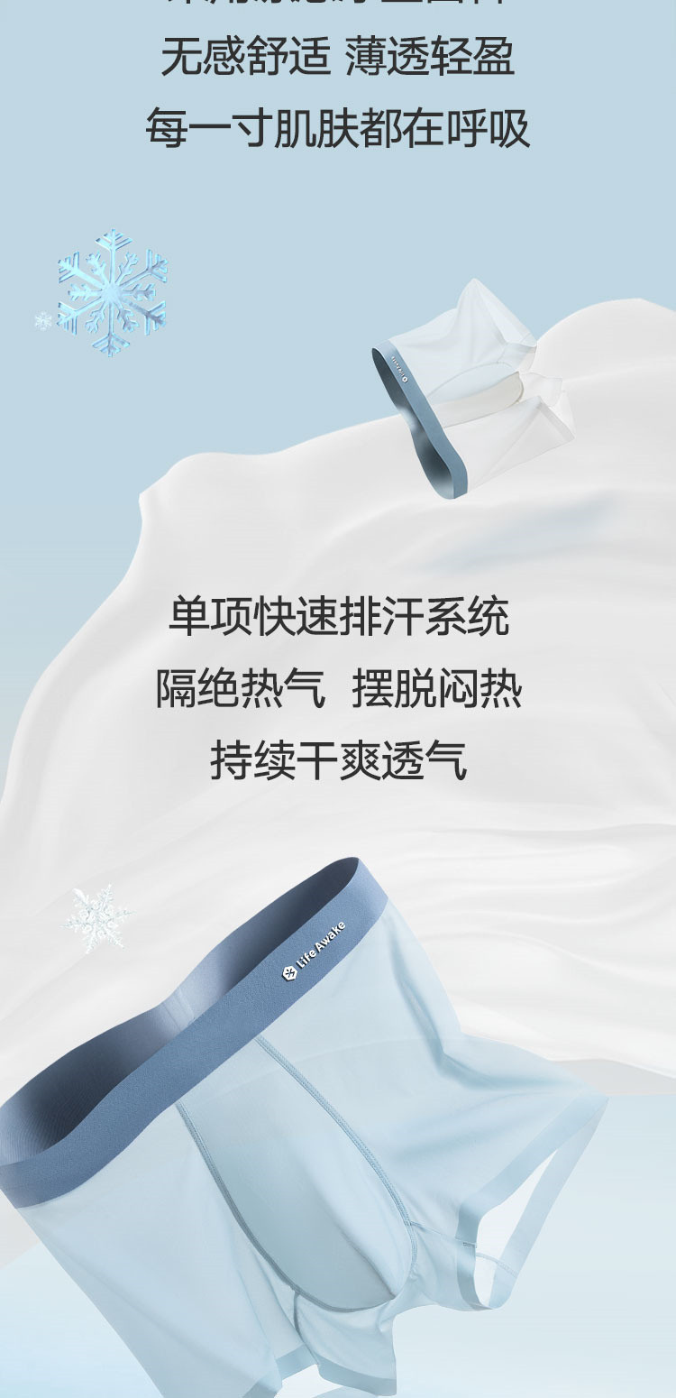 商品名称:【凉感科技 5A抑菌】3条装男士冰丝内裤吸湿排汗平角四角短裤 327642
