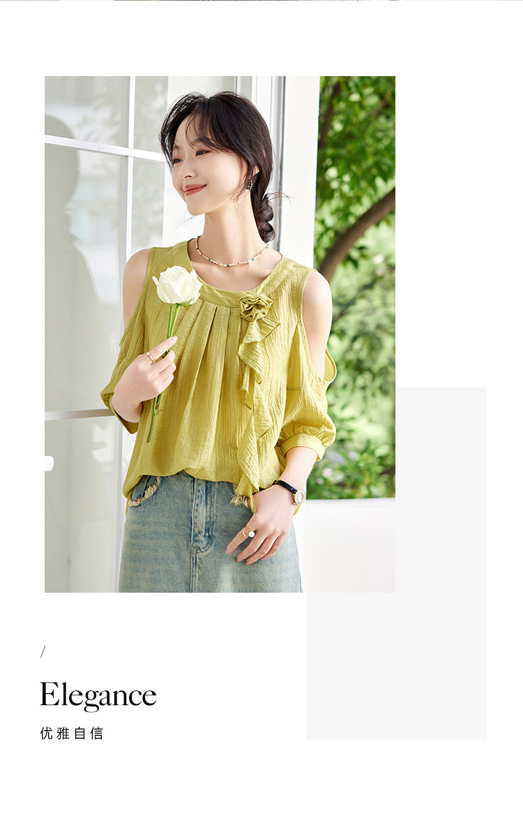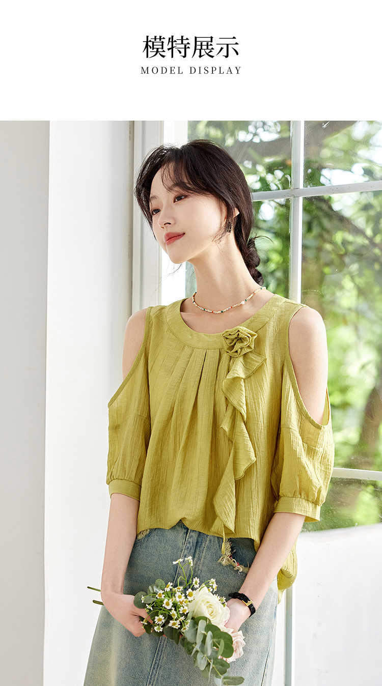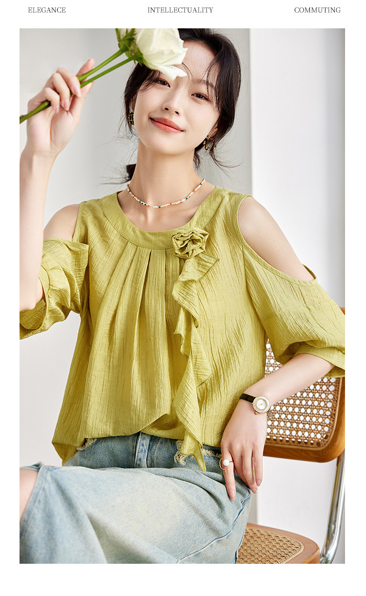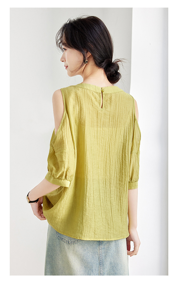 商品名称:莱赛尔露肩衬衫女2025夏季新款肌理感宽松显瘦泡泡袖轻薄上衣 465048