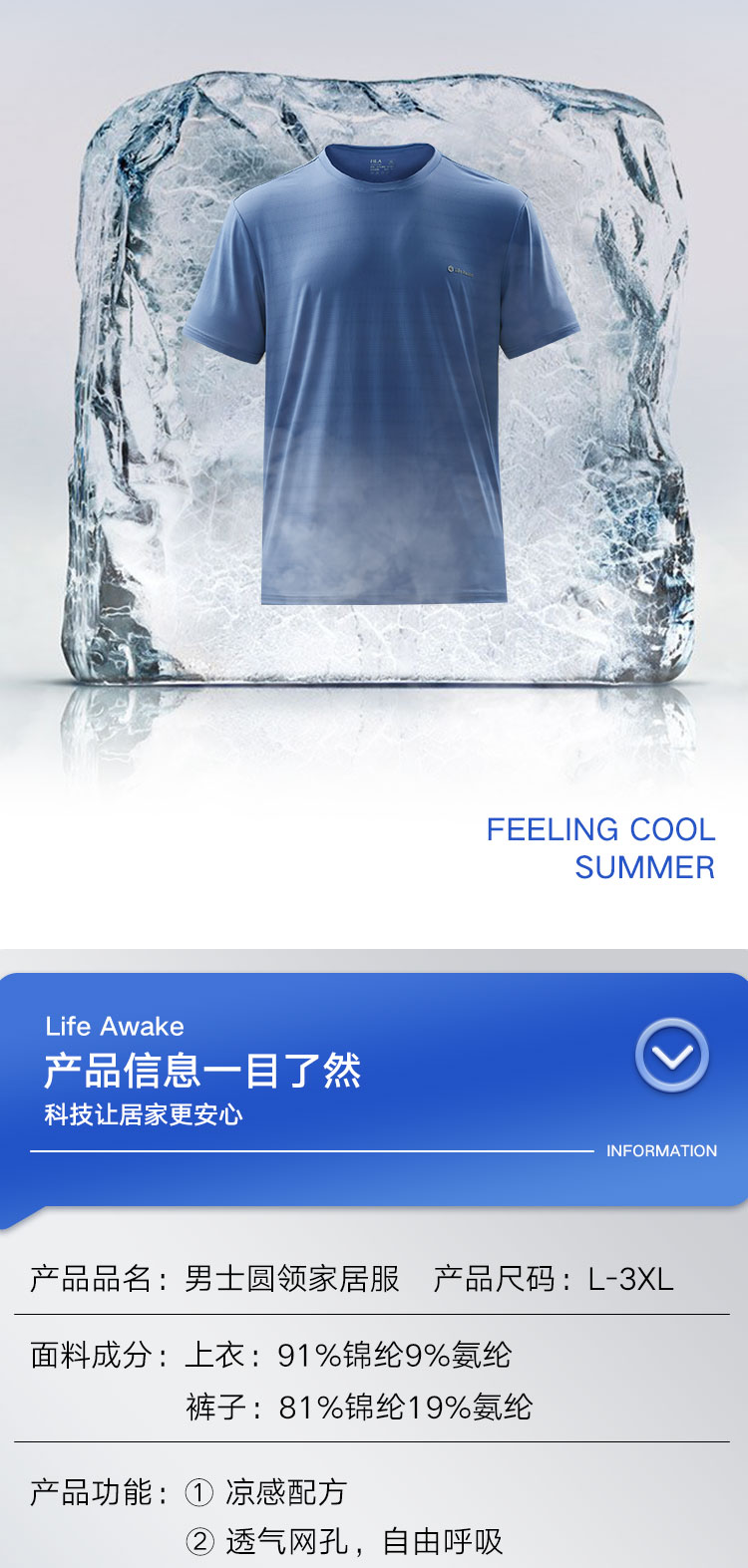商品名称:【出清捡漏】男士睡衣男夏季冰丝透气舒适圆领可外穿家居服套装男 432282