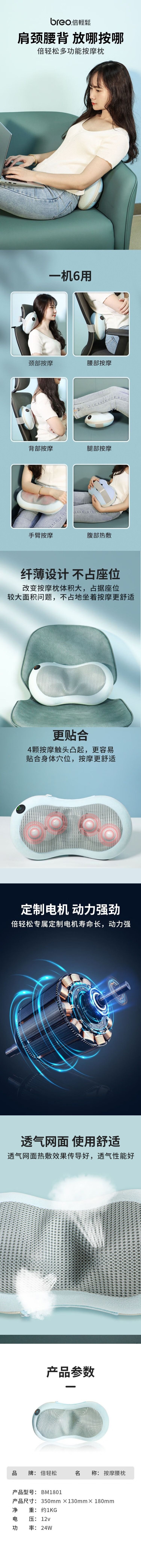 商品名称:倍轻松颈部腰部按摩器BM1801 腰枕颈枕 智能按摩可车载