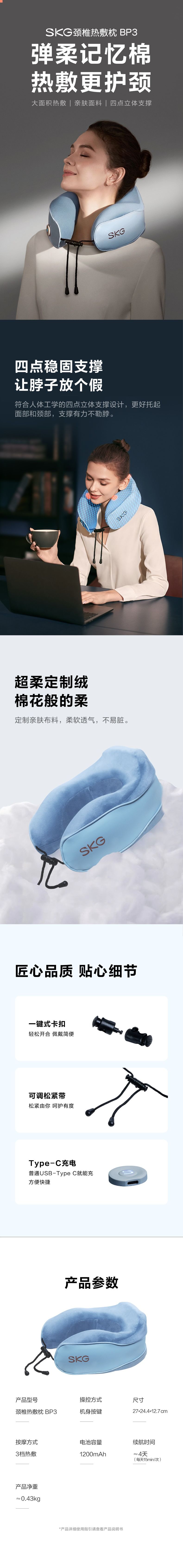 商品名称:SKG 颈椎热敷枕颈椎按摩器BP3 三挡热敷 超长续航大面积热敷 加热睡眠环颈U型枕
