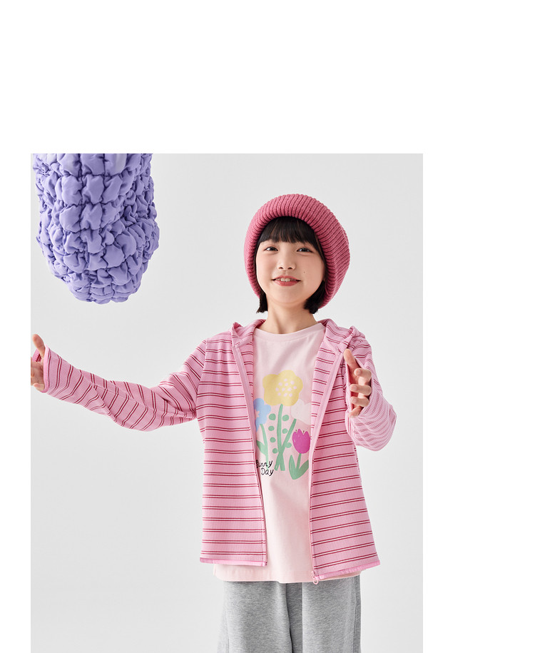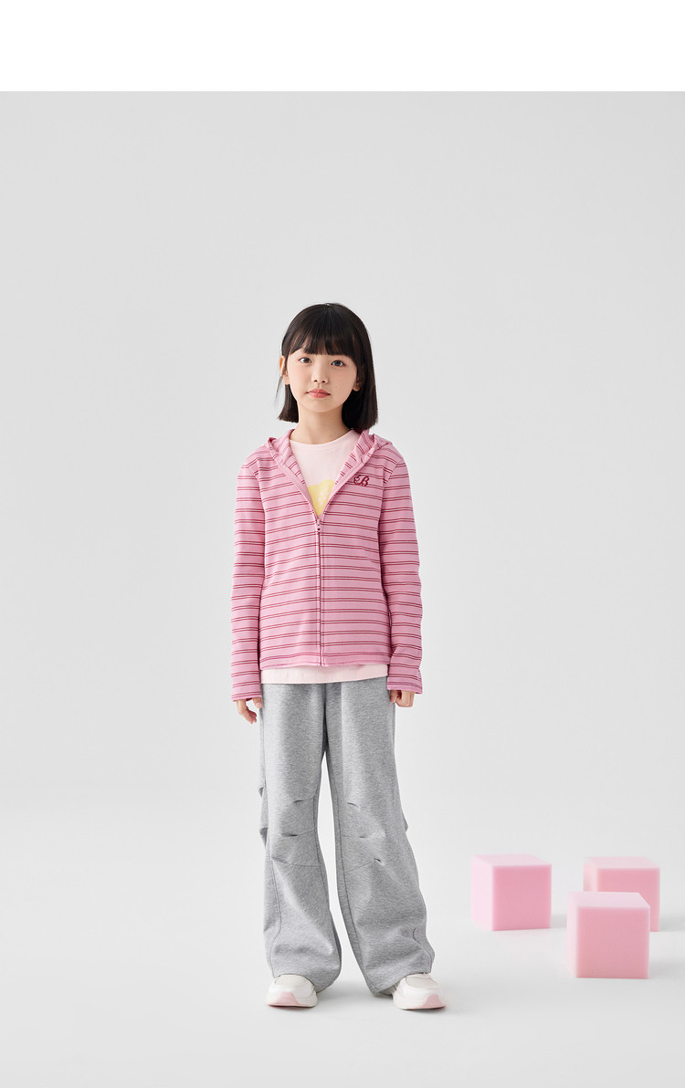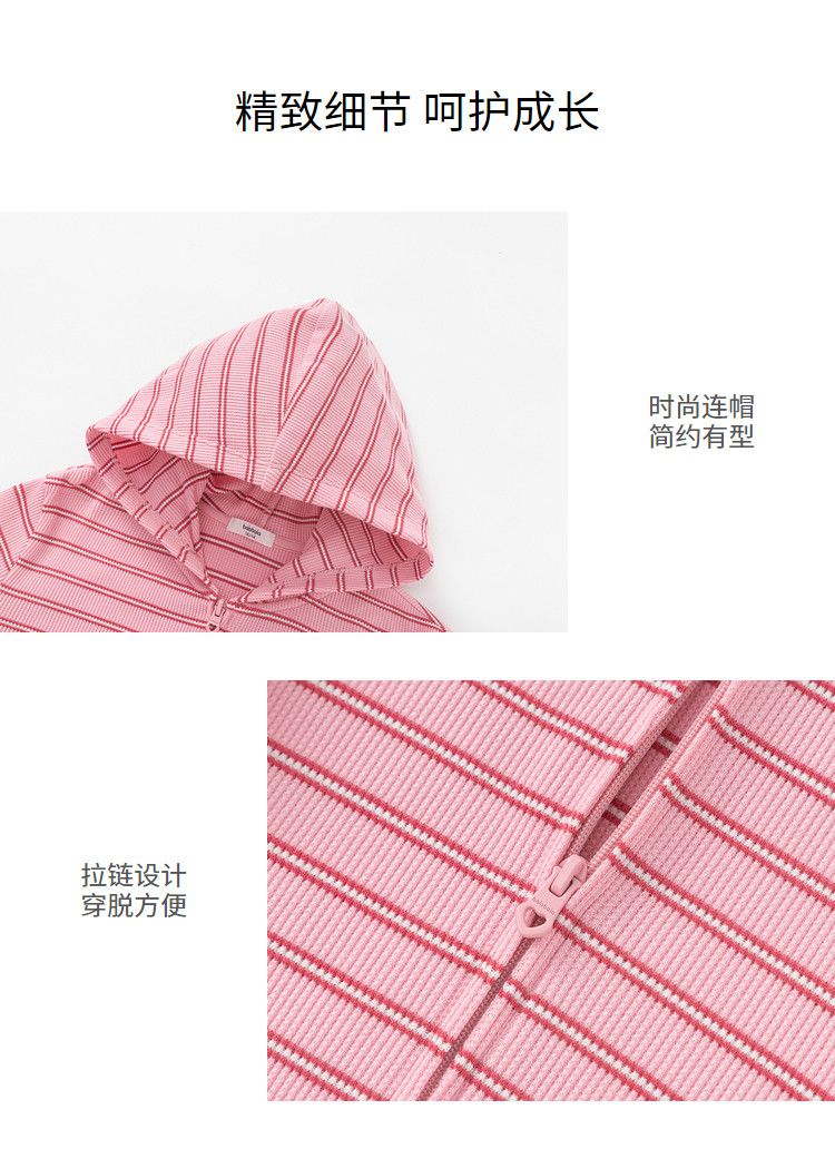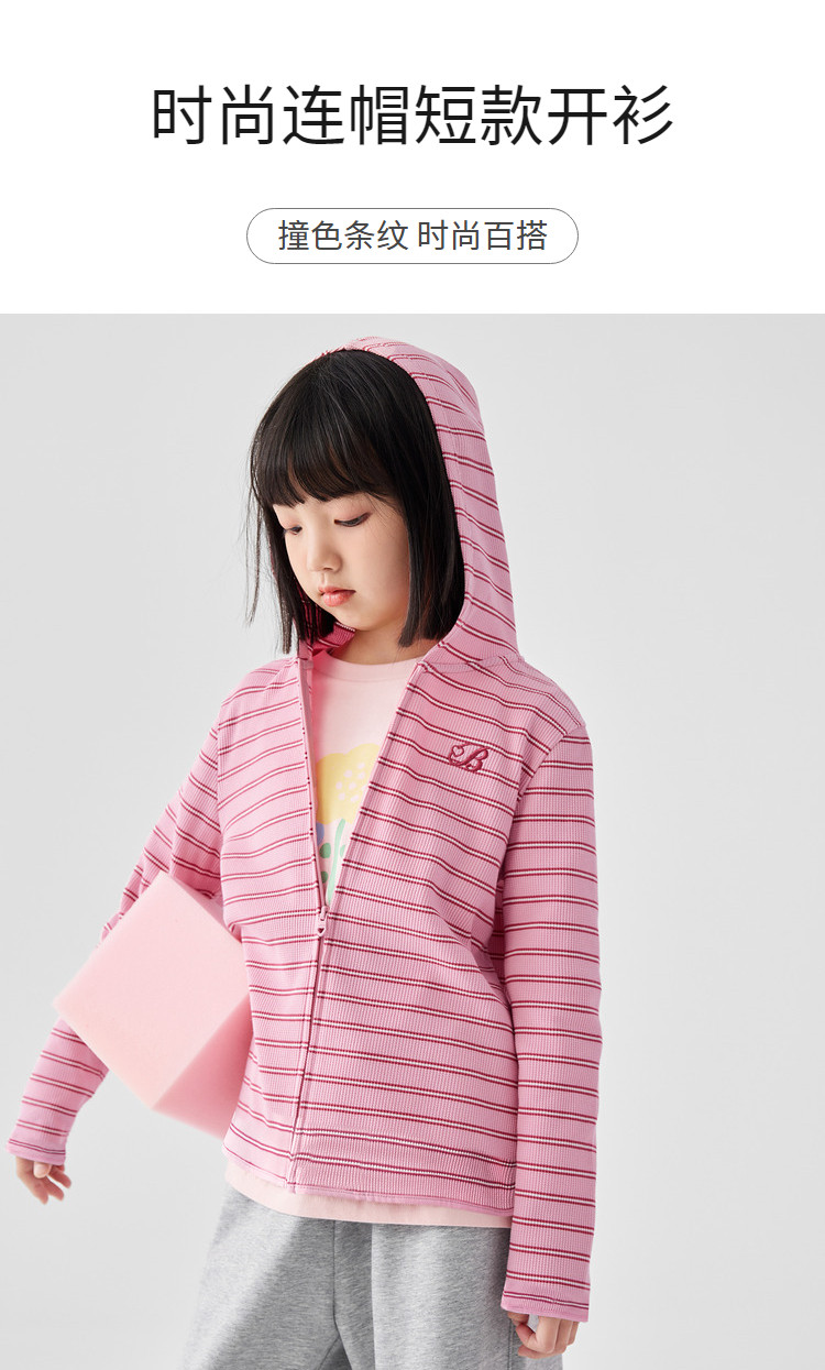 撞色连帽外套女童春秋大童短款运动服儿童条纹肌理感 846725
