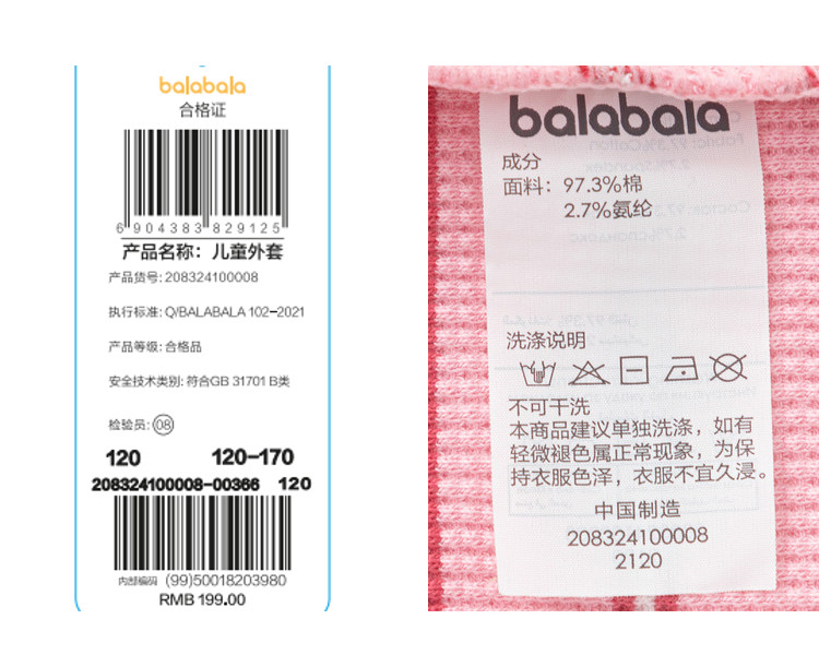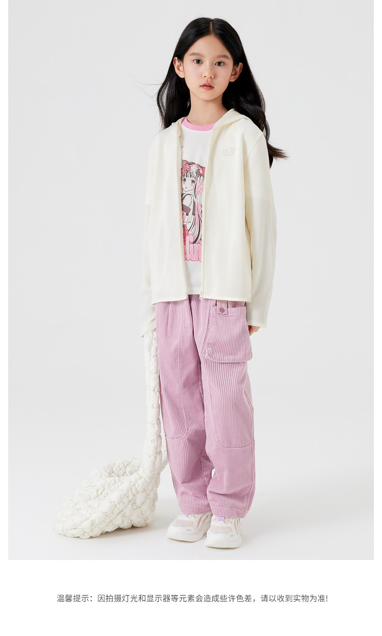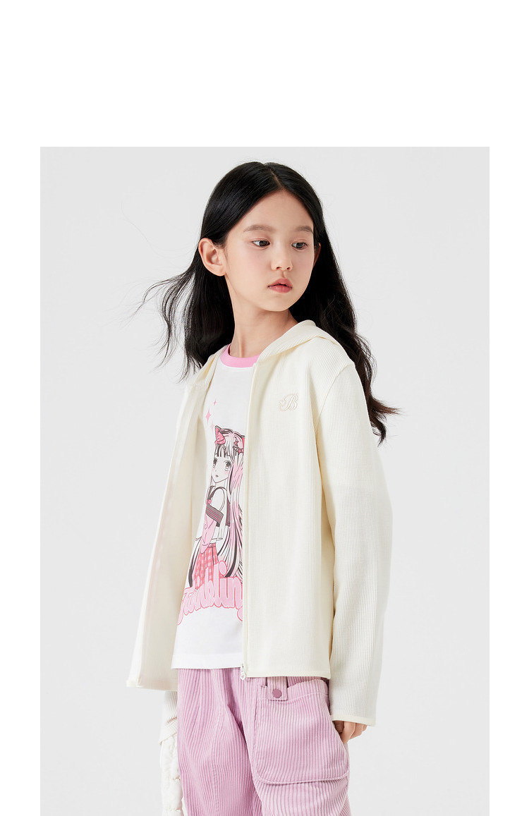 商品名称:撞色连帽外套女童春秋大童短款运动服儿童条纹肌理感 846725
