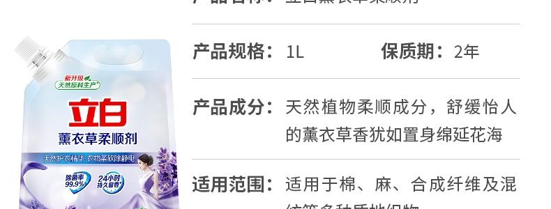 商品名称:立白 柔顺剂7kg(大师香氛2kg+薰衣草1L*5袋)