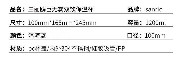商品名称:FACE 三丽鸥巨无霸双饮保温杯 洱海蓝 1200ml