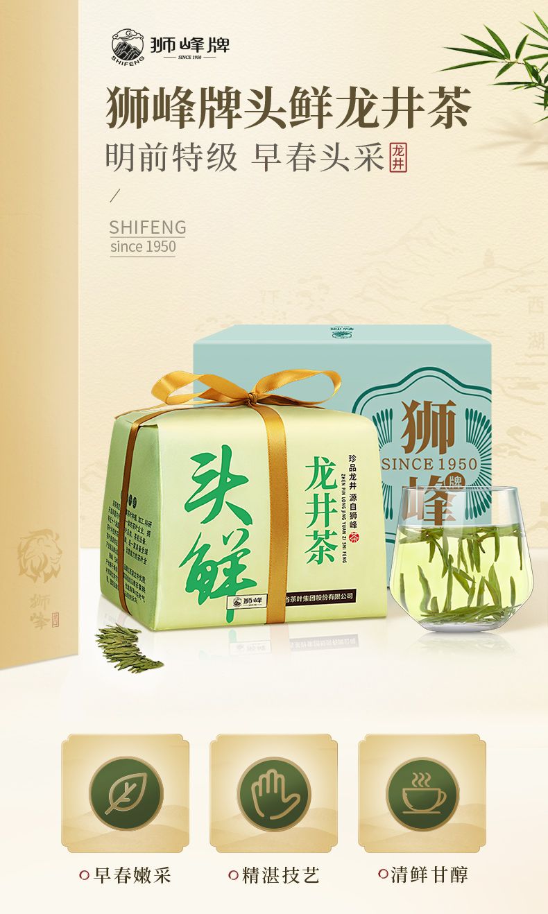 商品名称:狮峰牌 龙井茶头采特级纸包 200g