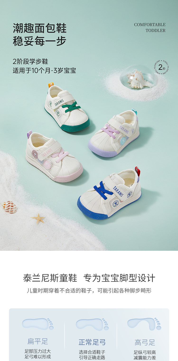 夏季1-3岁儿童机能面包鞋男童女宝宝软底学步鞋透气凉爽网面鞋 493271