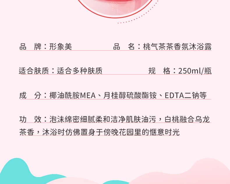 商品名称:形象桃茶茶香氛沐浴露 250ml