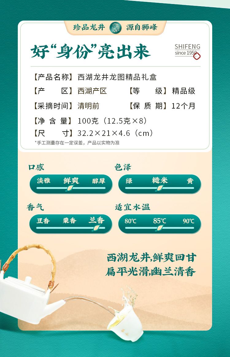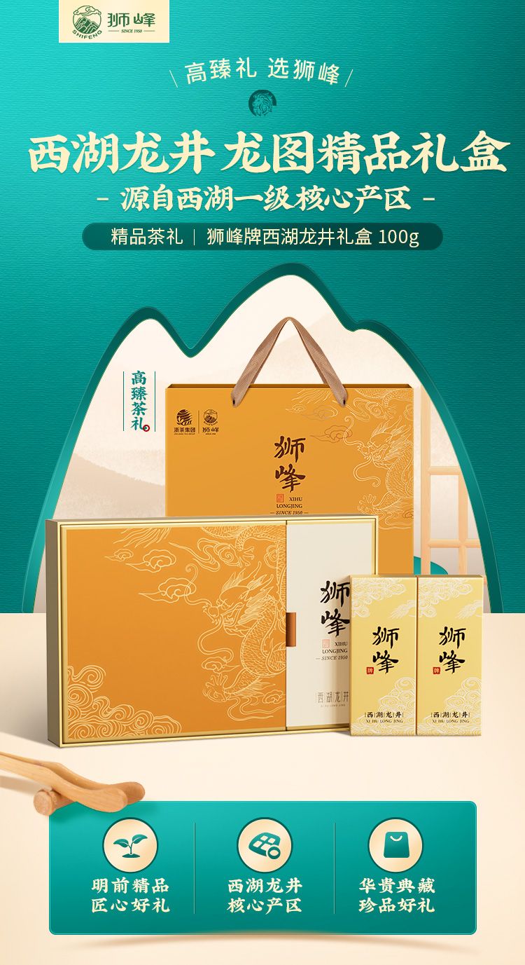 商品名称:狮峰牌 特级西湖龙井龙图礼盒 100g