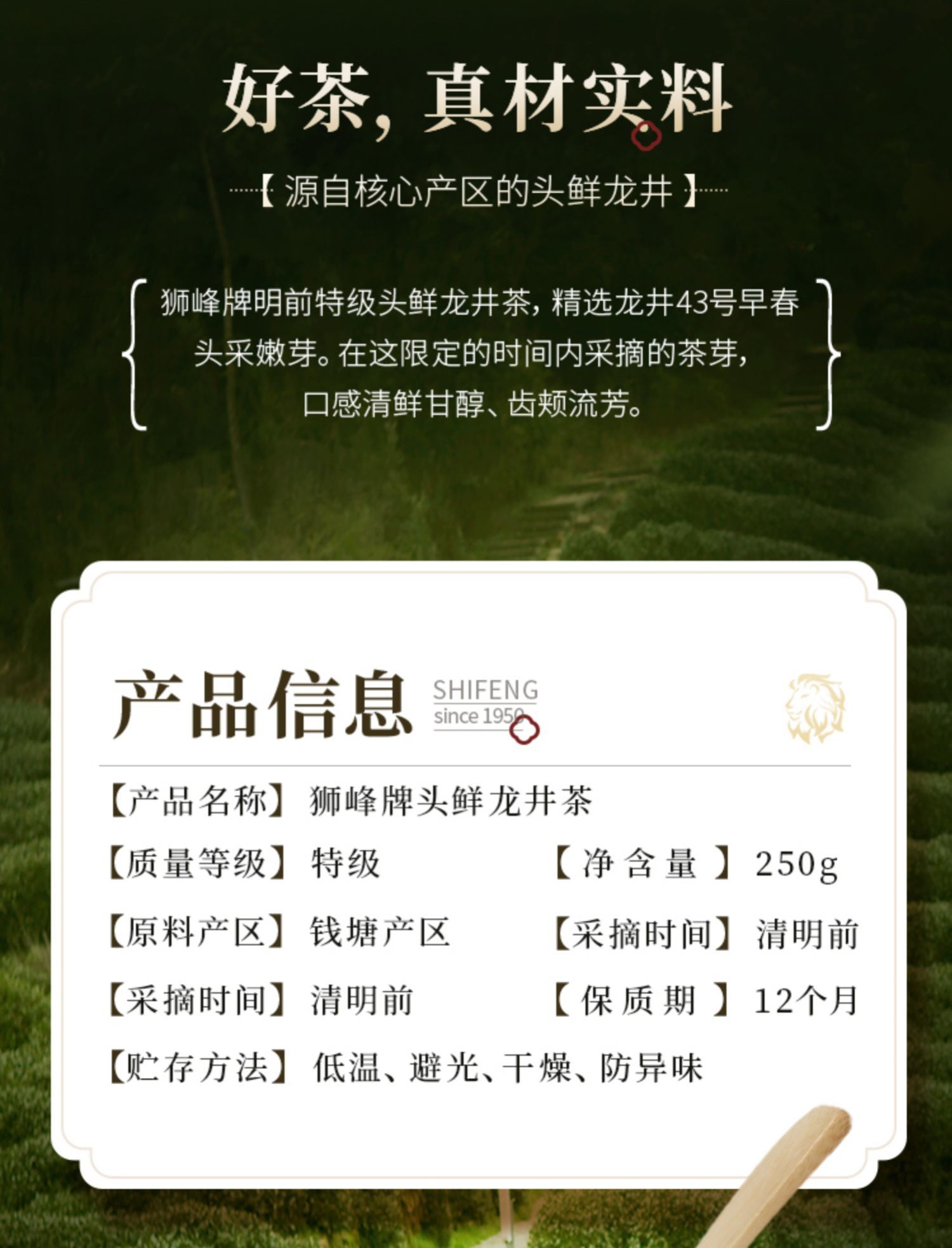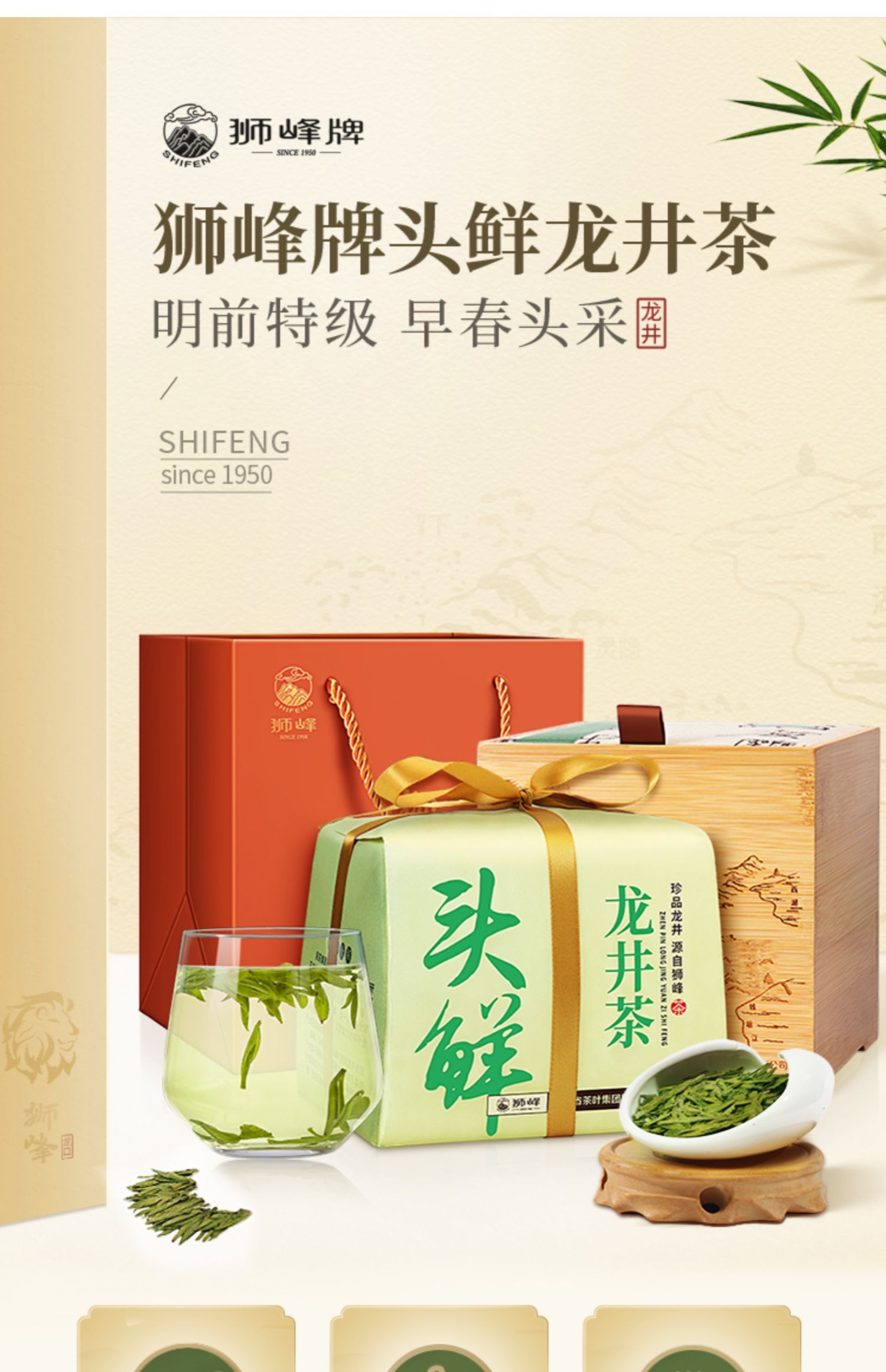 商品名称:狮峰牌 龙井茶江南赋优品头鲜竹盒 250g