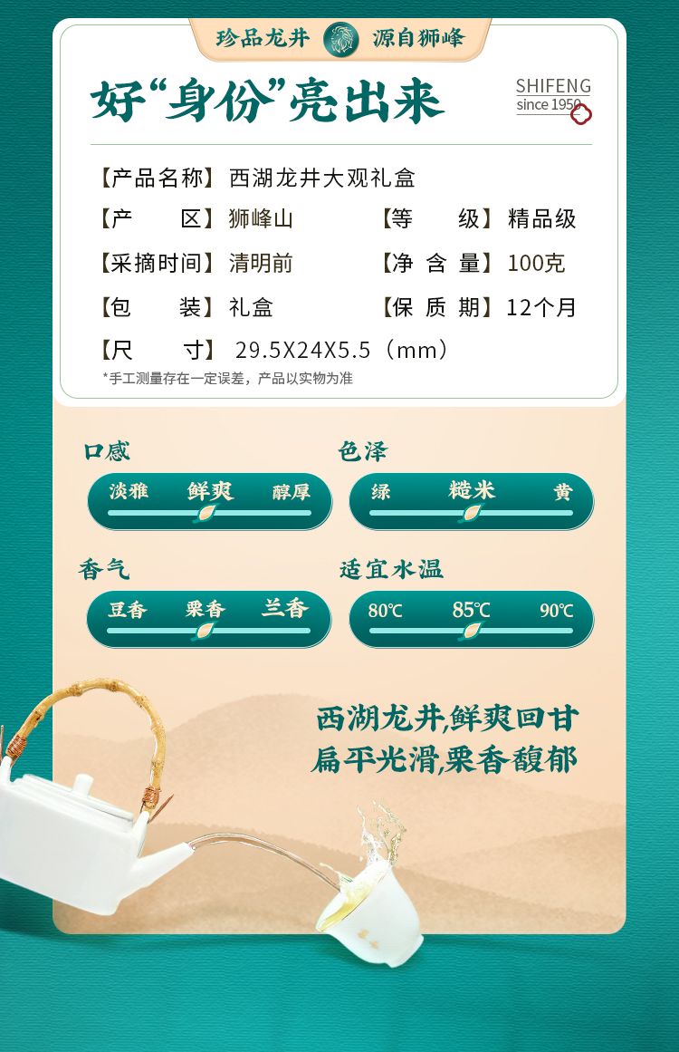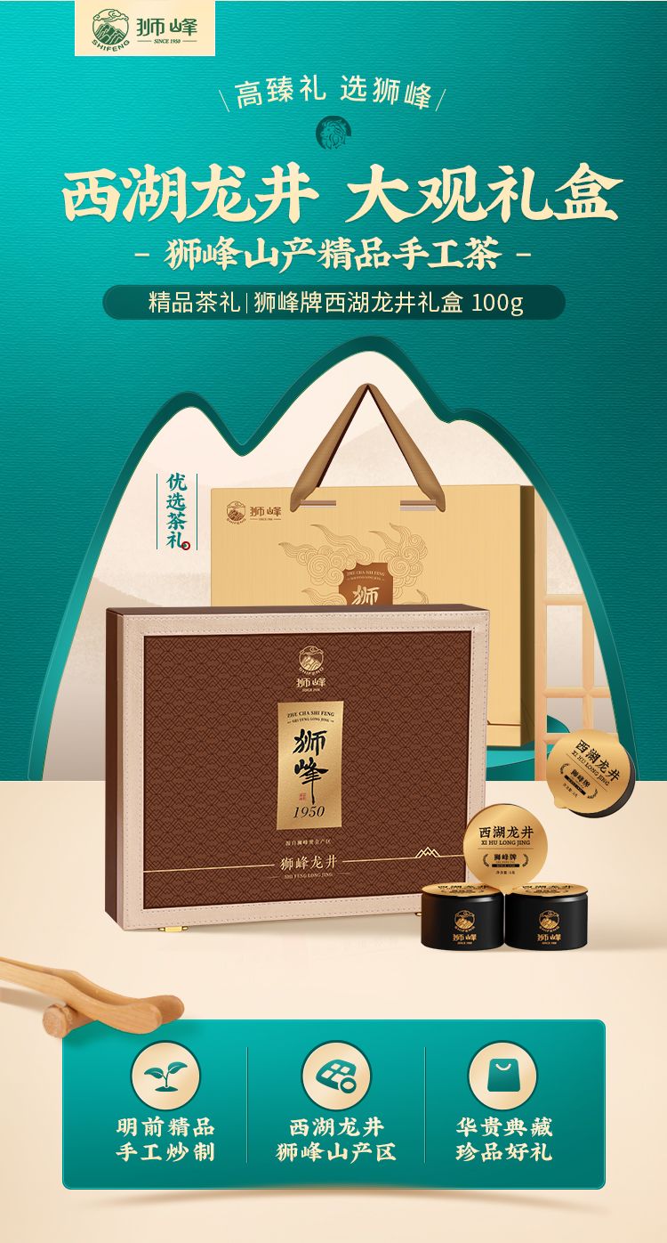 商品名称:狮峰牌 精品西湖龙井狮龙大观肆号礼盒 100g