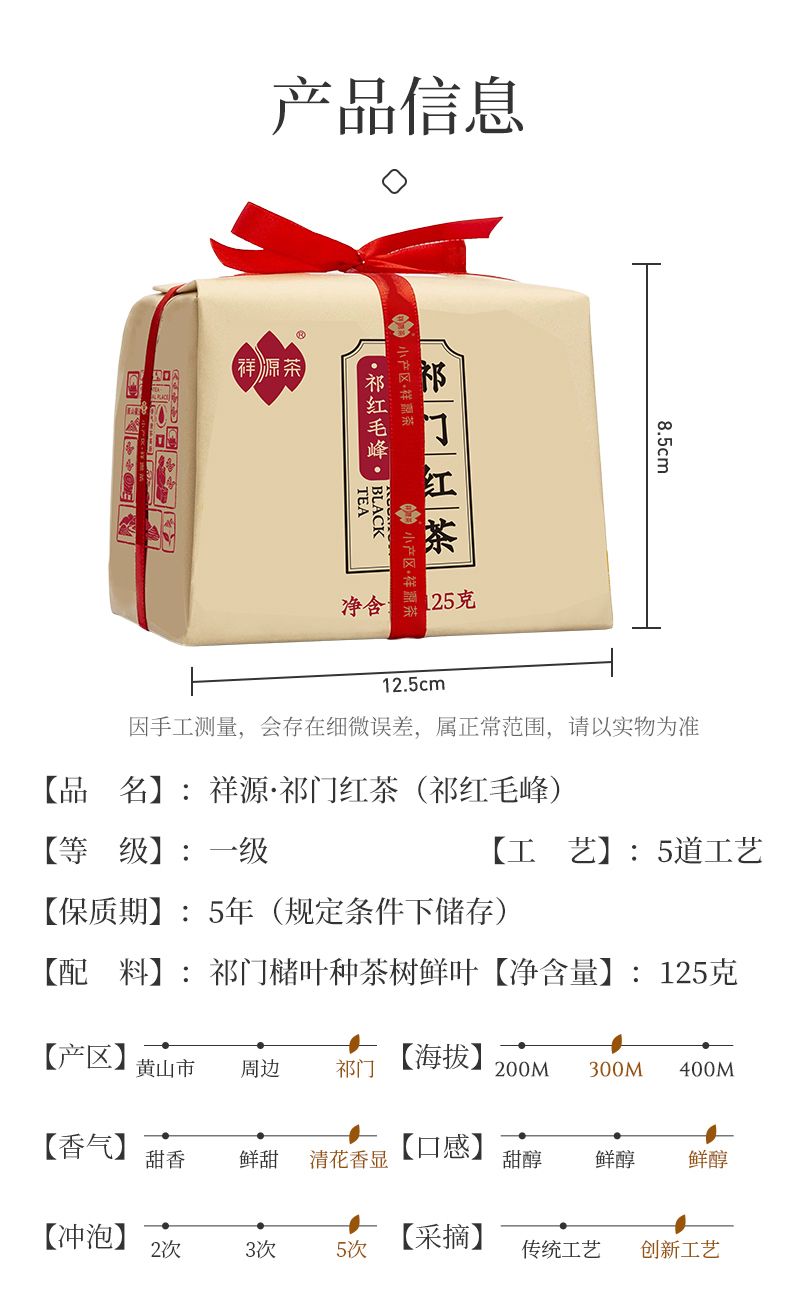 商品名称:祥源茶 一级祁红毛峰 125g