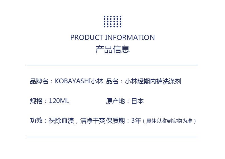 商品名称:日本 KOBAYASHI/小林制药月经内裤洗涤剂 120ml