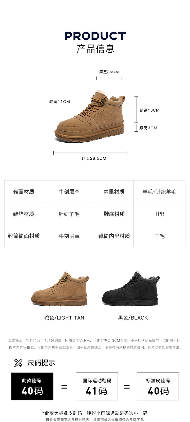 商品名称:【加绒】百丽男鞋秋冬季新雪地靴男士户外加绒保暖棉鞋男款冬季 840346