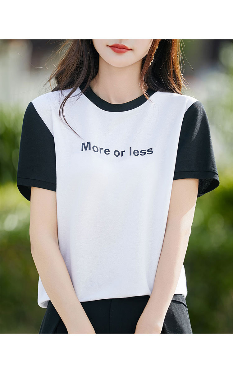 商品名称:【假两件t恤女】夏季时尚休闲百搭宽松拼色圆领女士短袖上衣 964063