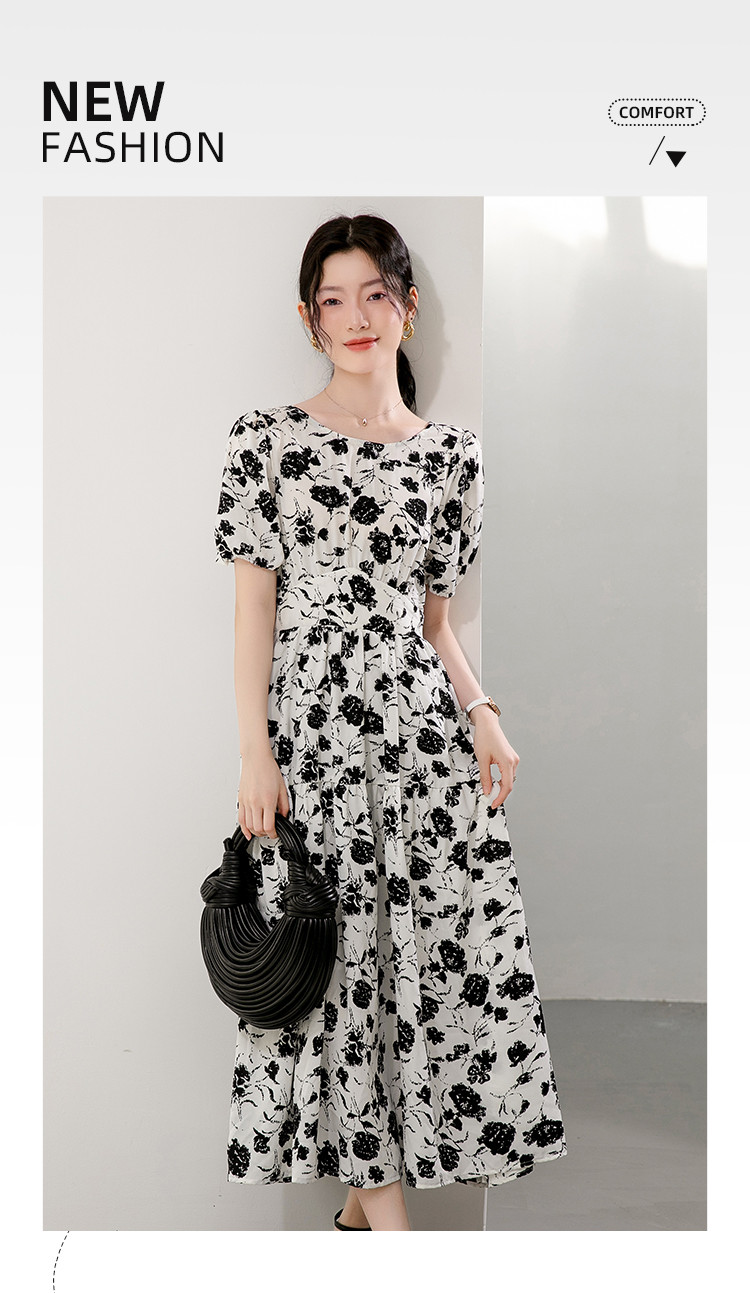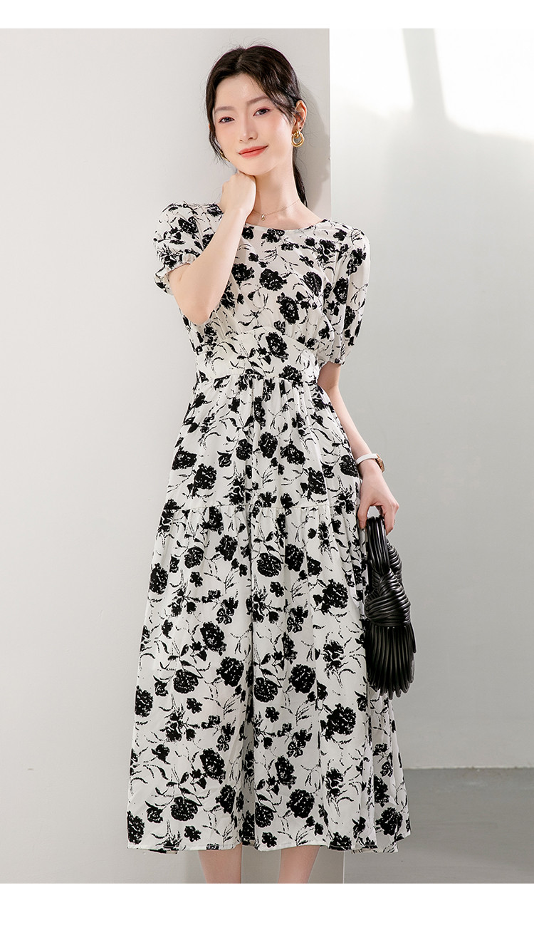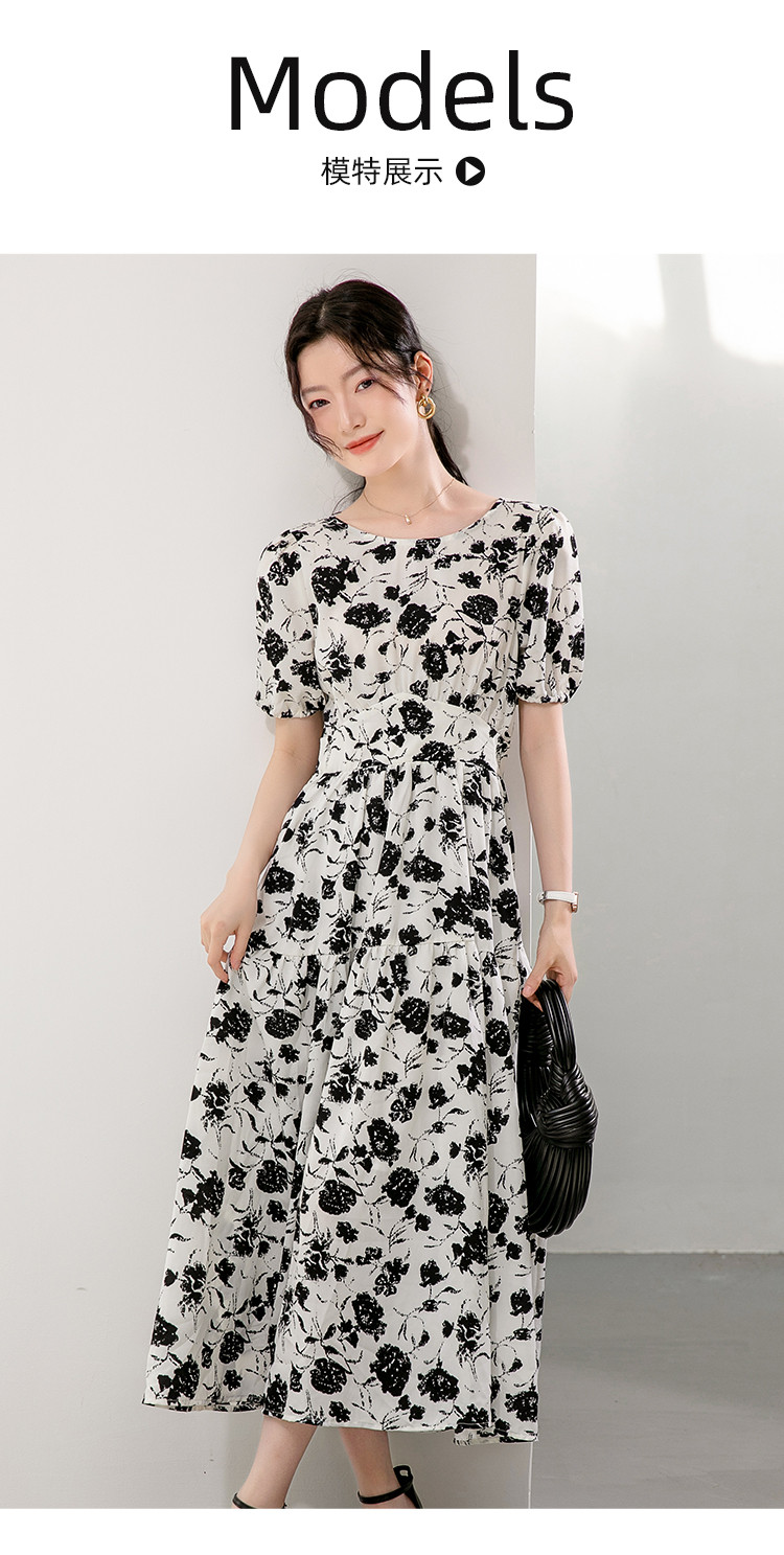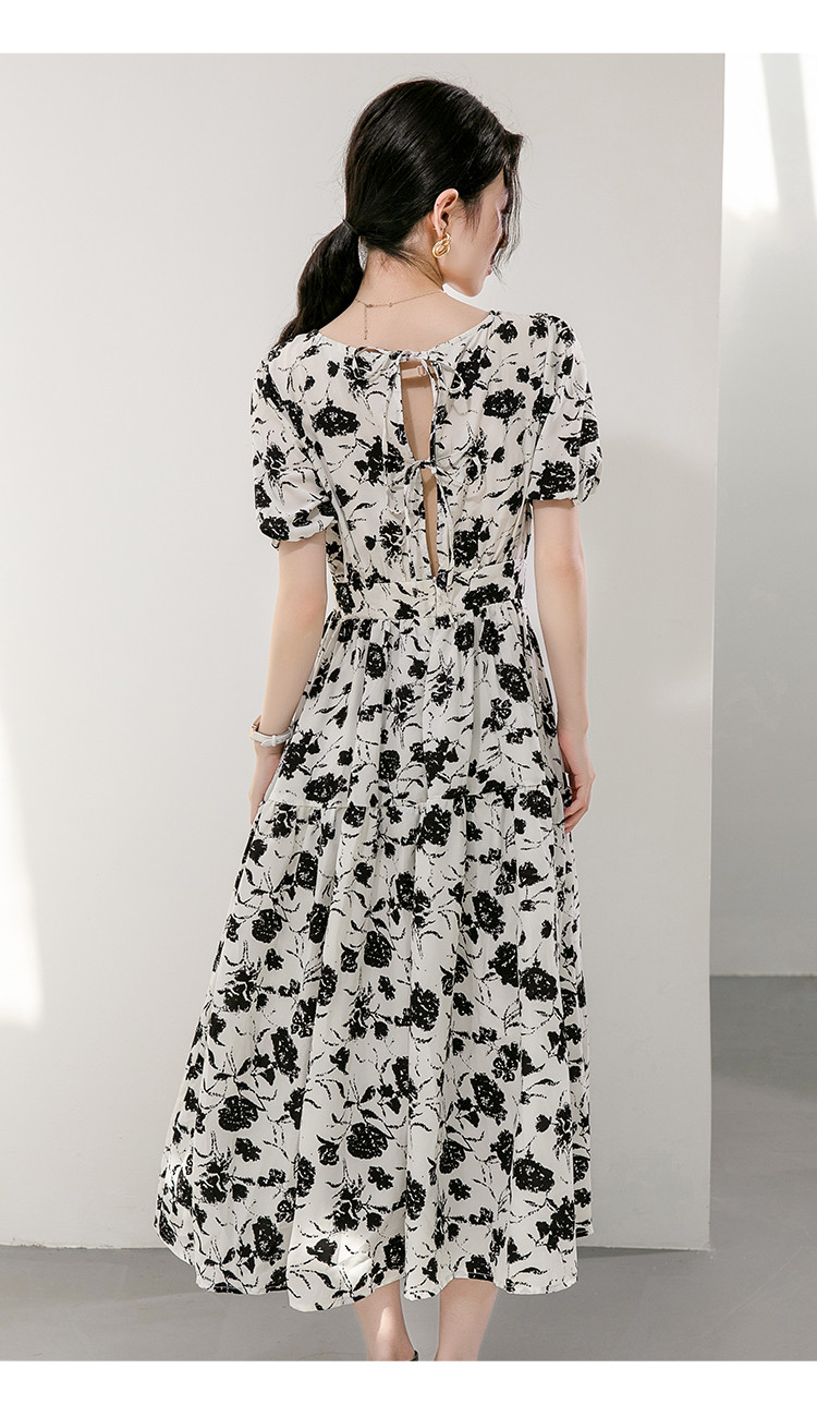 法式碎花连衣裙女夏时尚淑女显瘦轻熟风后背镂空A字裙 870680