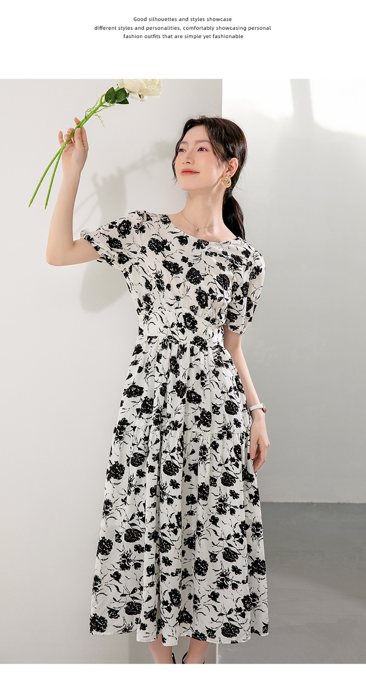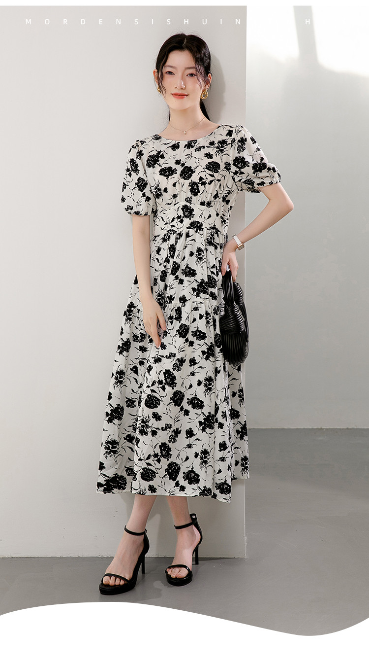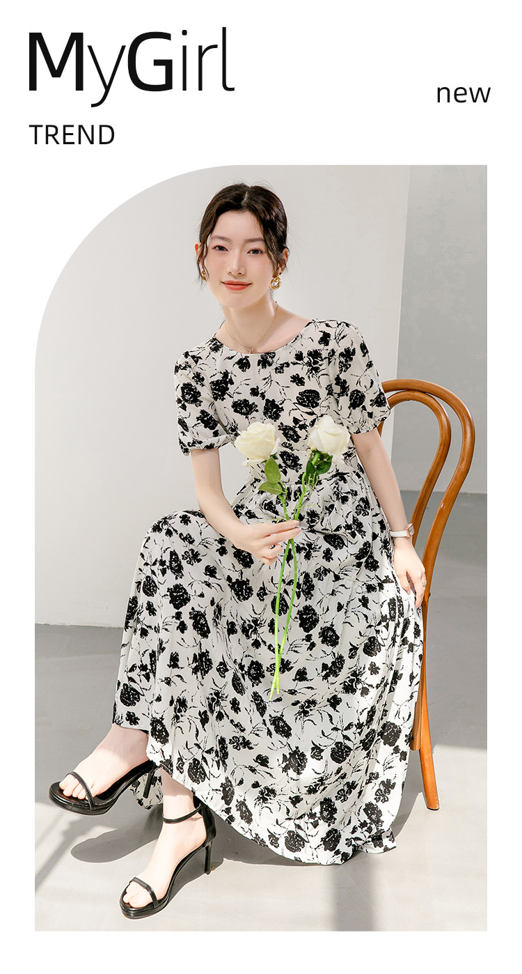 法式碎花连衣裙女夏时尚淑女显瘦轻熟风后背镂空A字裙 870680