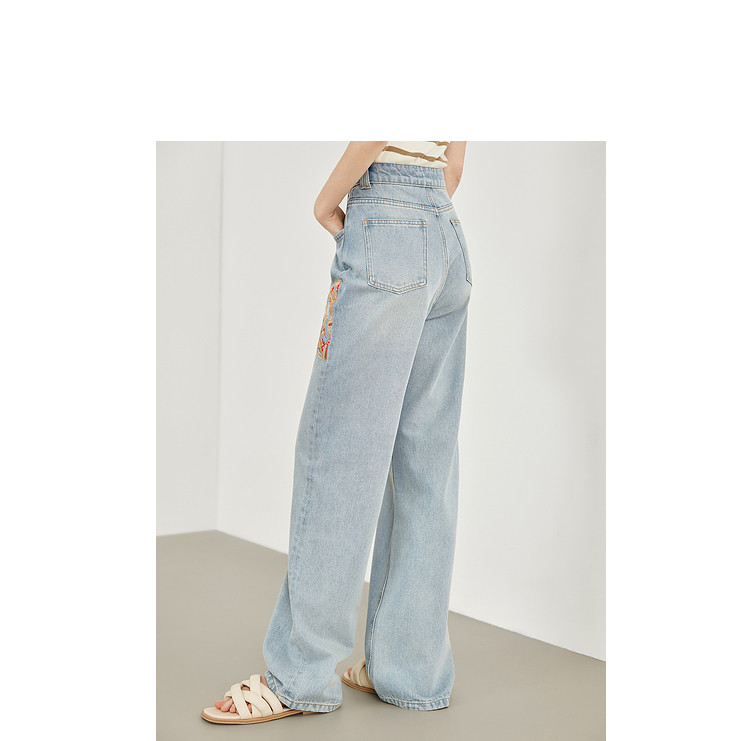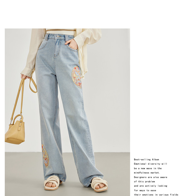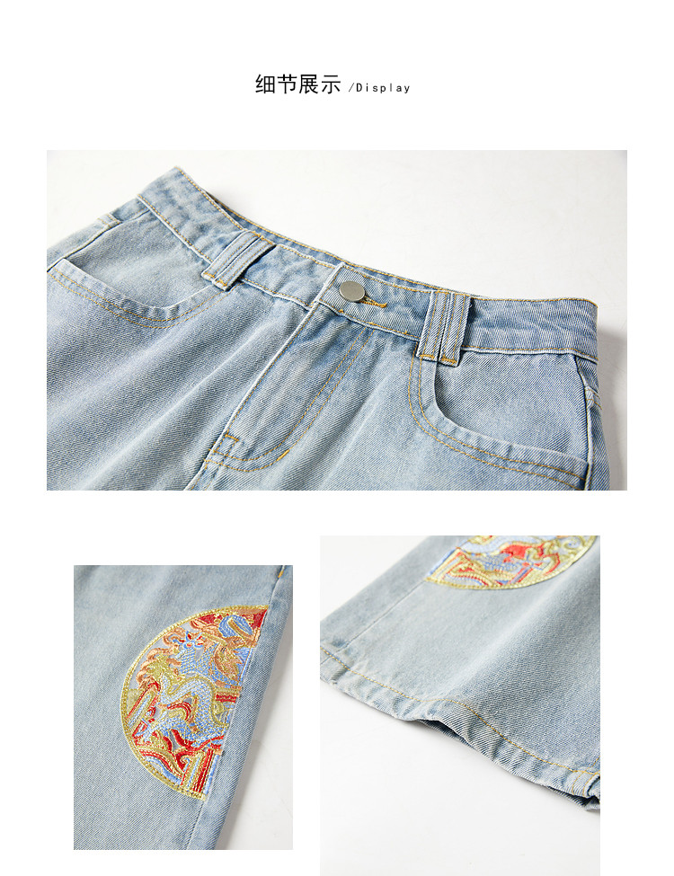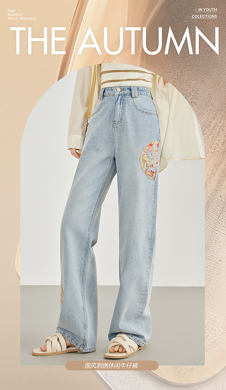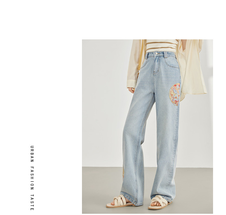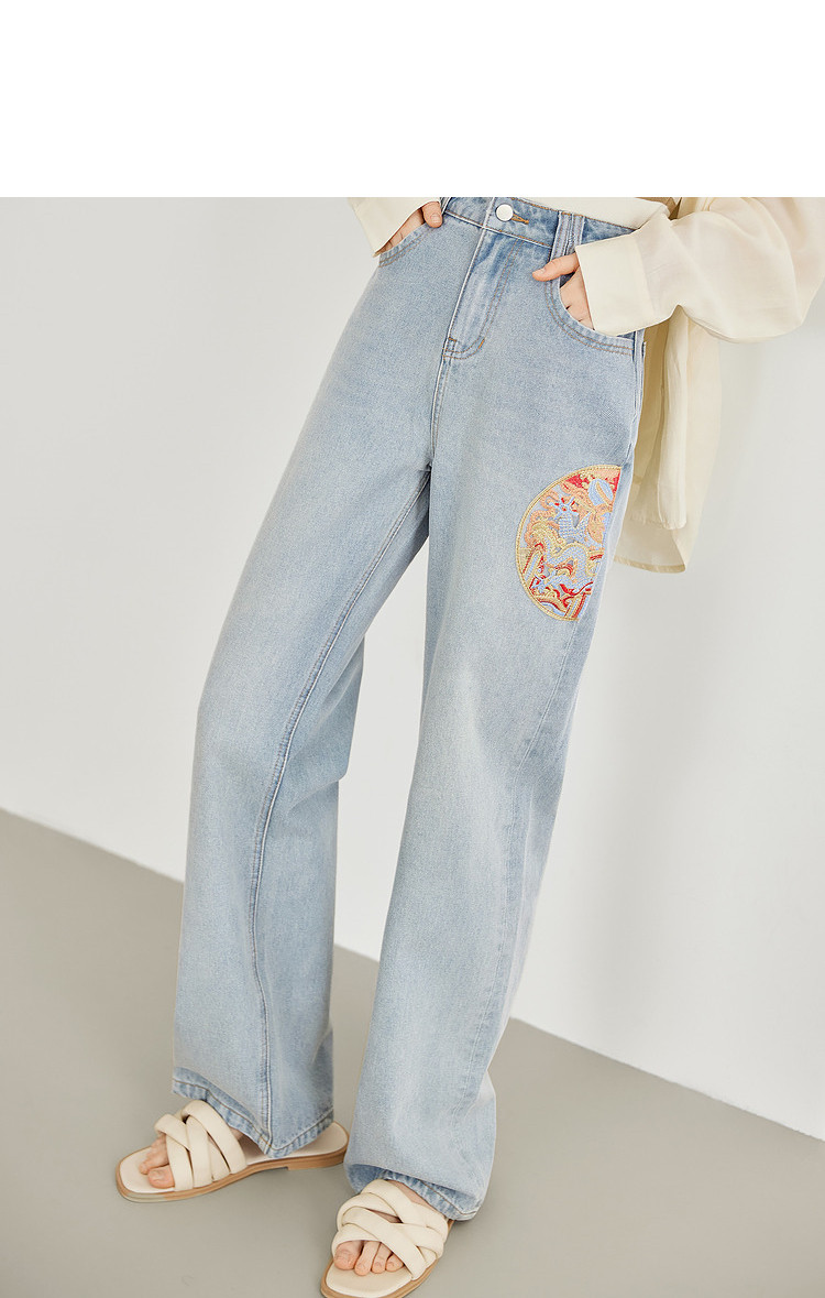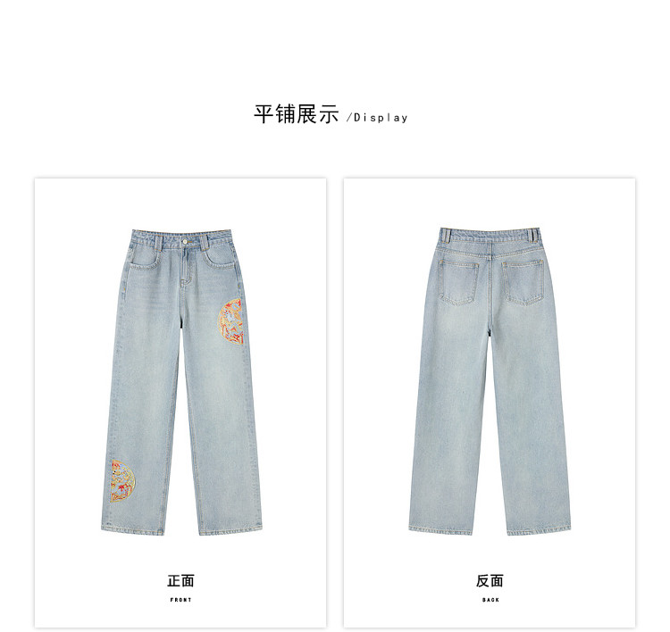 商品名称:【2024秋季】新中式国风刺绣高腰直筒牛仔裤显瘦阔腿裤 489876