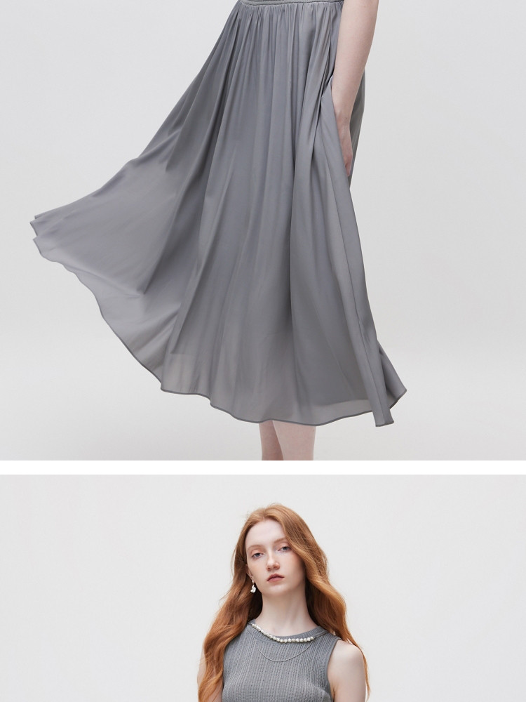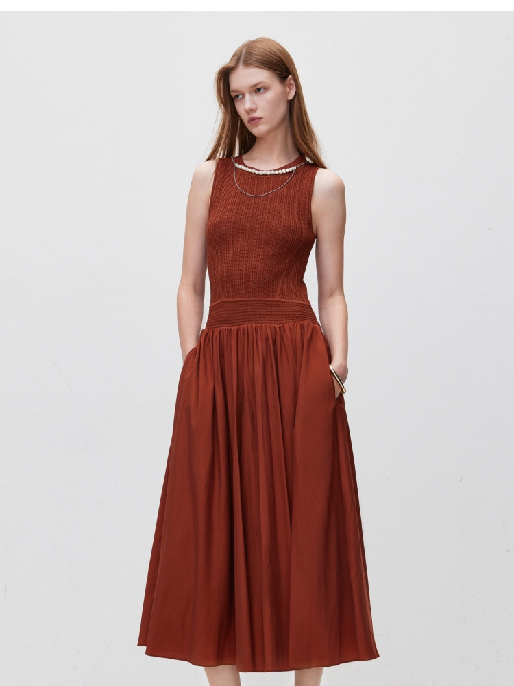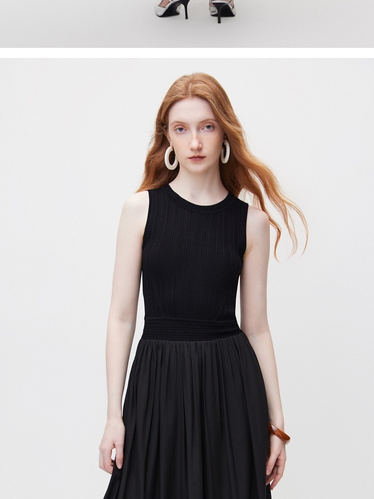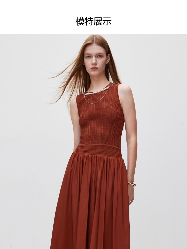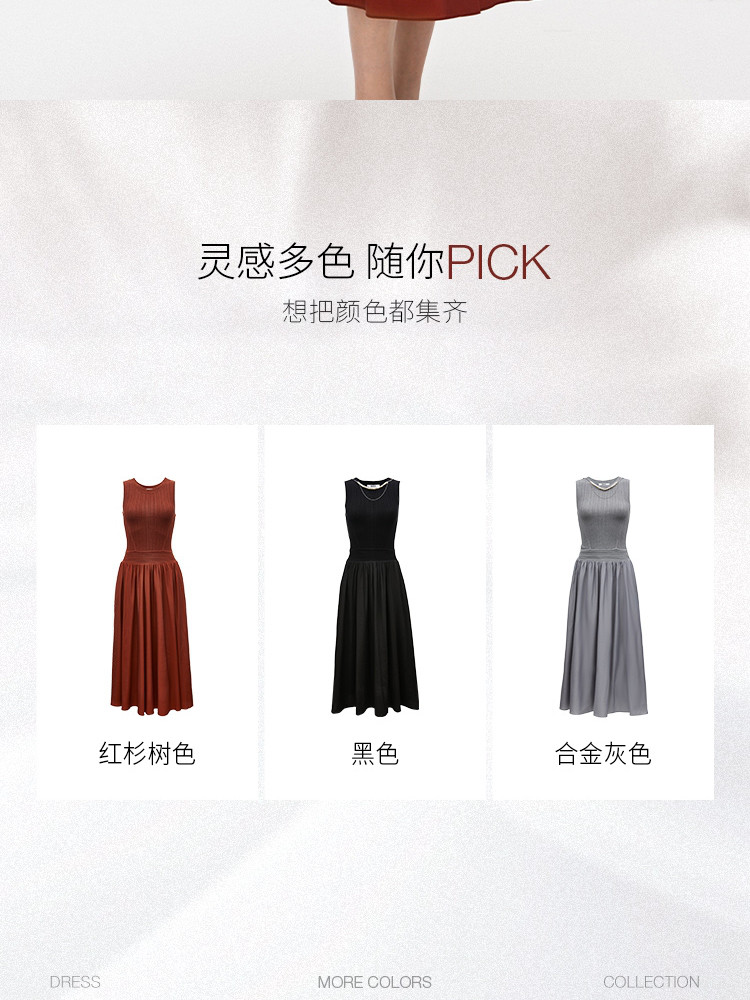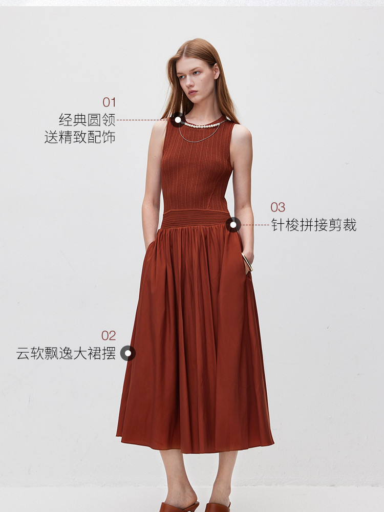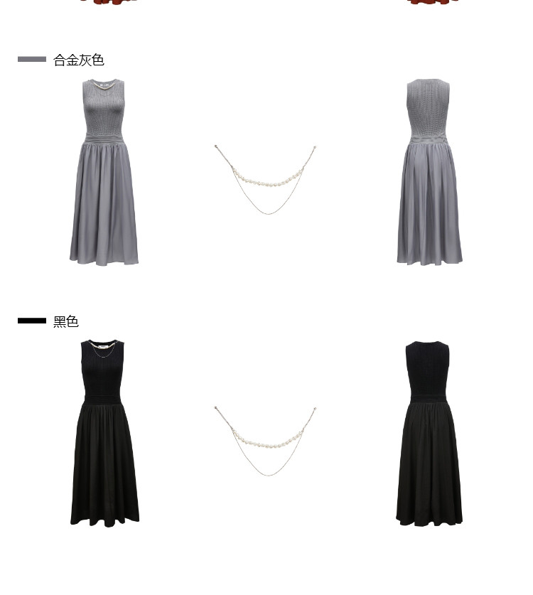 商品名称:【无袖收腰】夏季时尚优雅圆领中长裙无袖收腰连衣裙女 510938