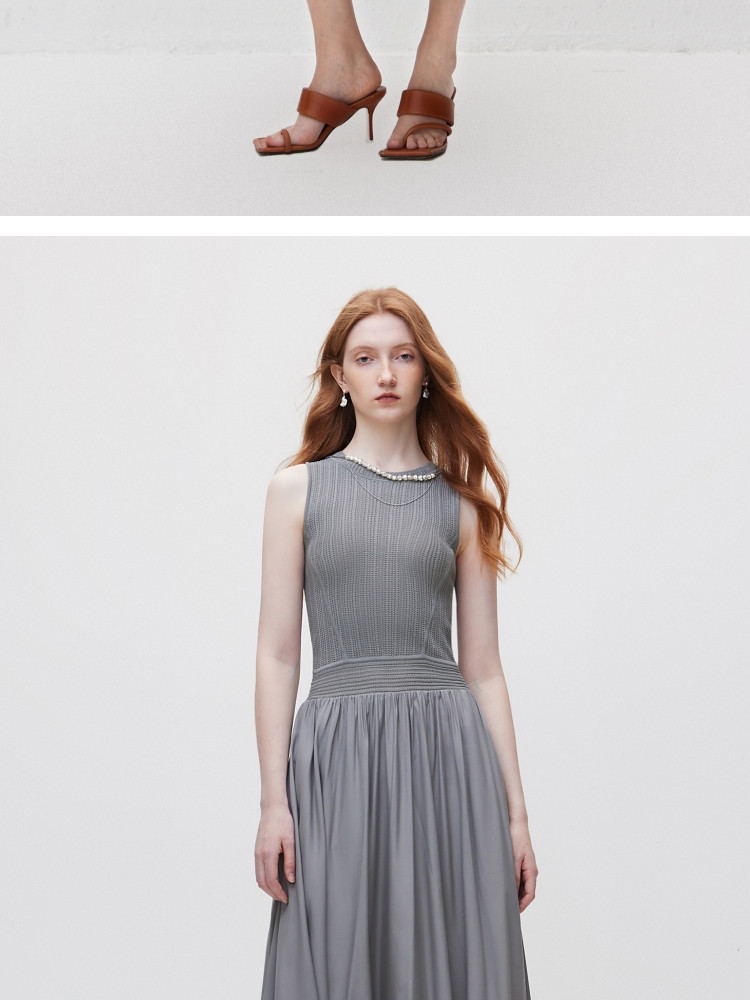 【无袖收腰】夏季时尚优雅圆领中长裙无袖收腰连衣裙女 510938