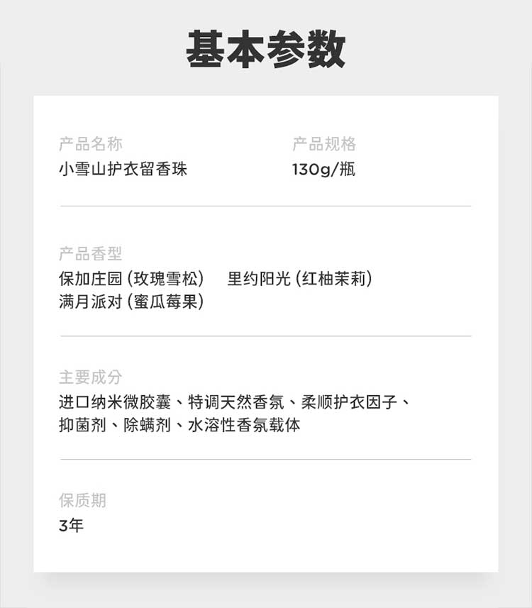 商品名称:元本生活 小雪山护衣留香珠130g