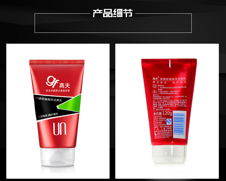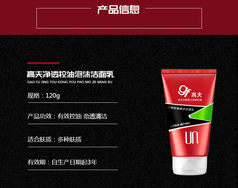商品名称:高夫 净透控油泡沫洁面乳 120g 净透洁净 清爽控油