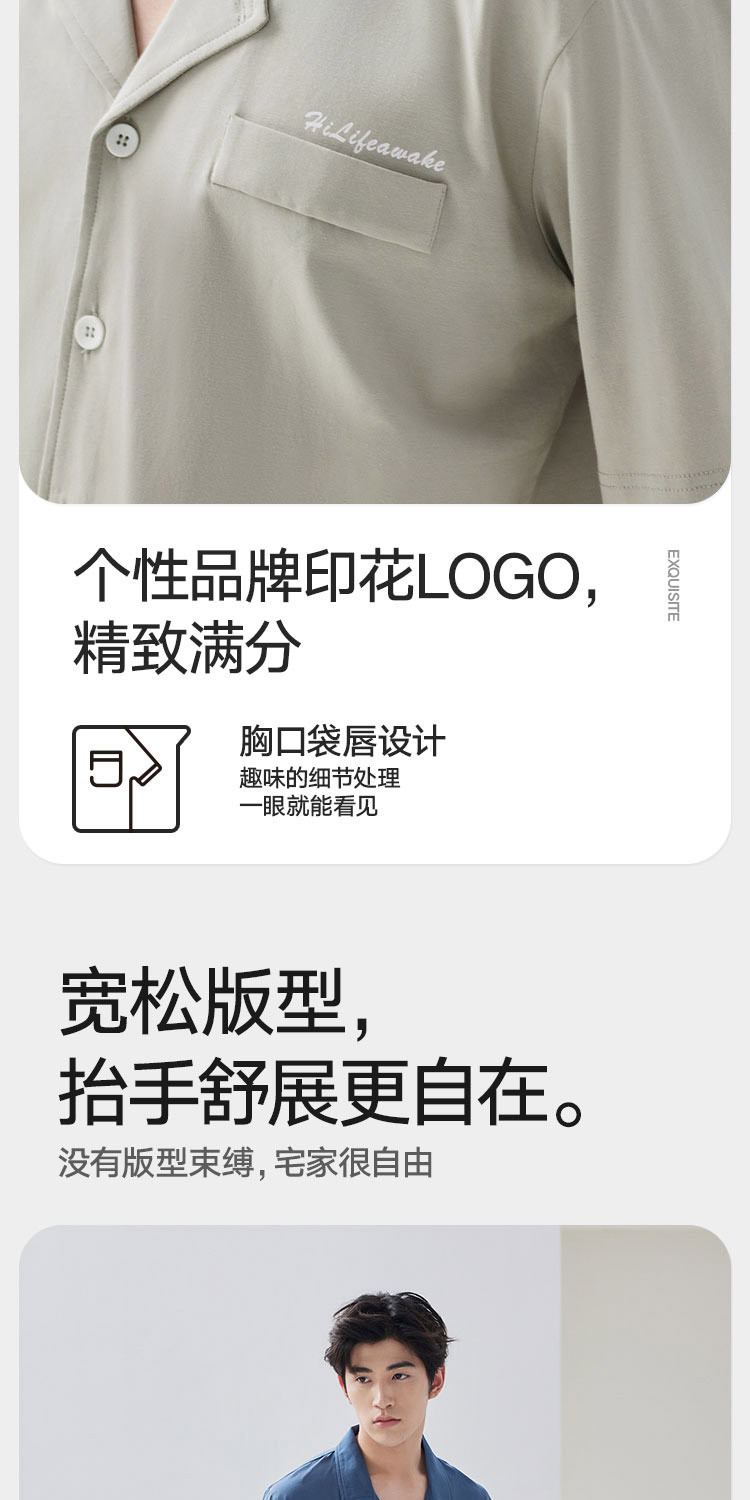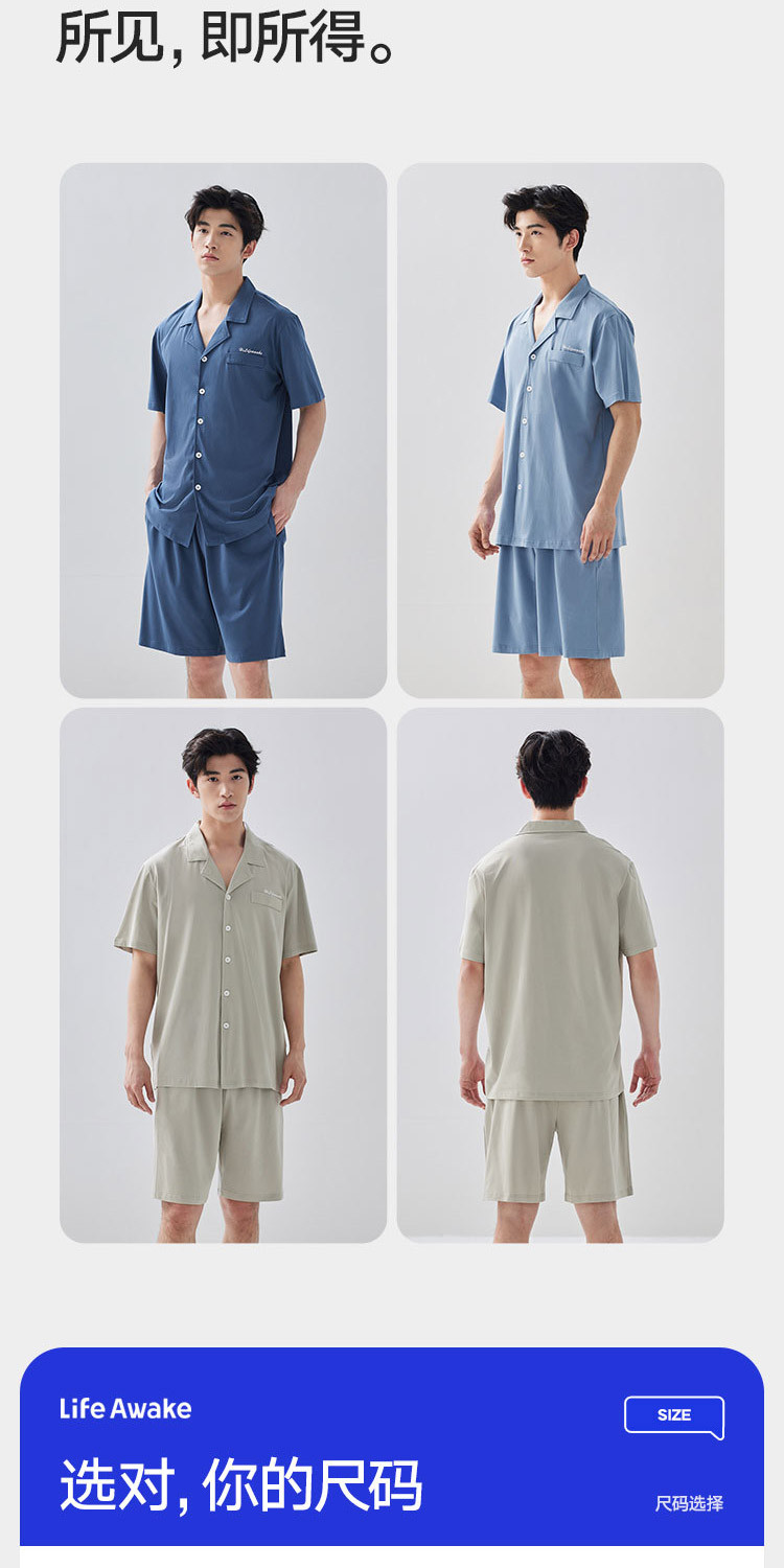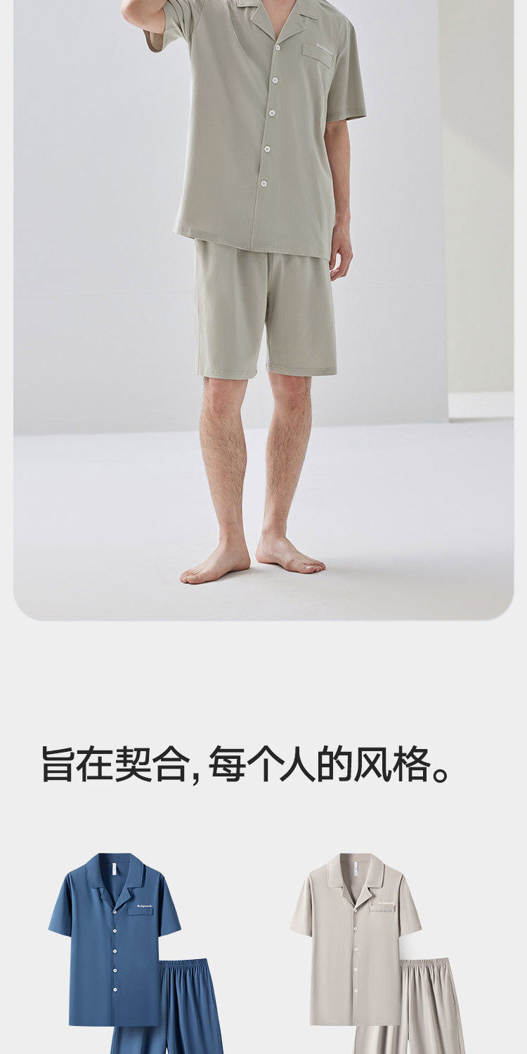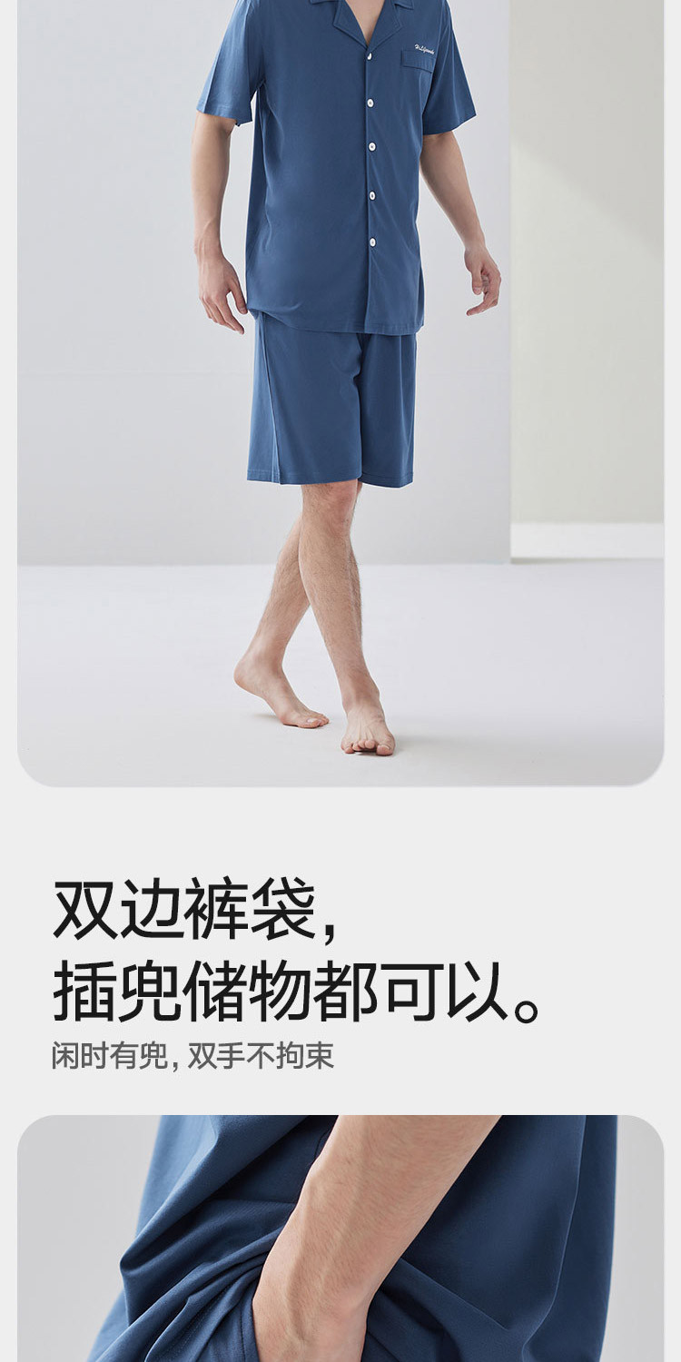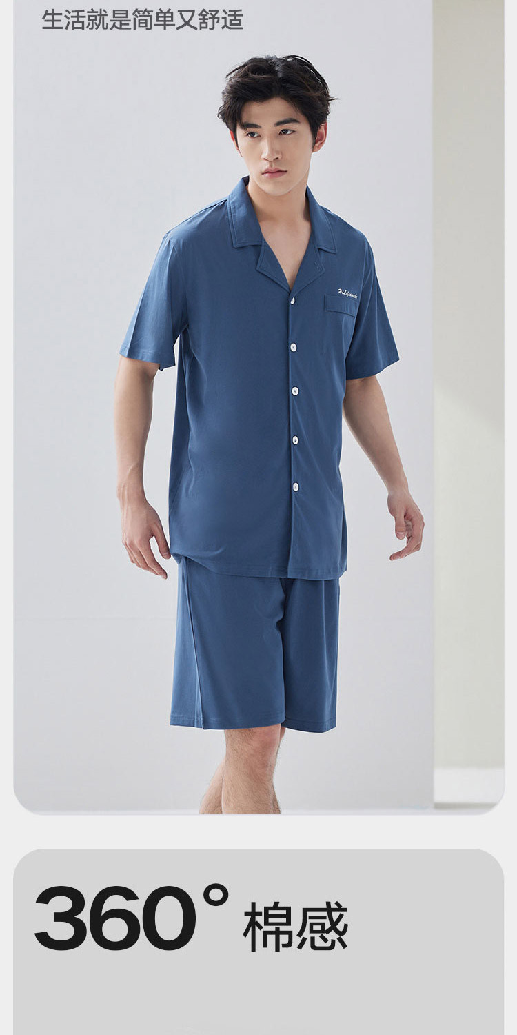 商品名称:捡漏【95%棉 3A级抑菌】翻领男士睡衣男夏季短款家居服套装 217690
